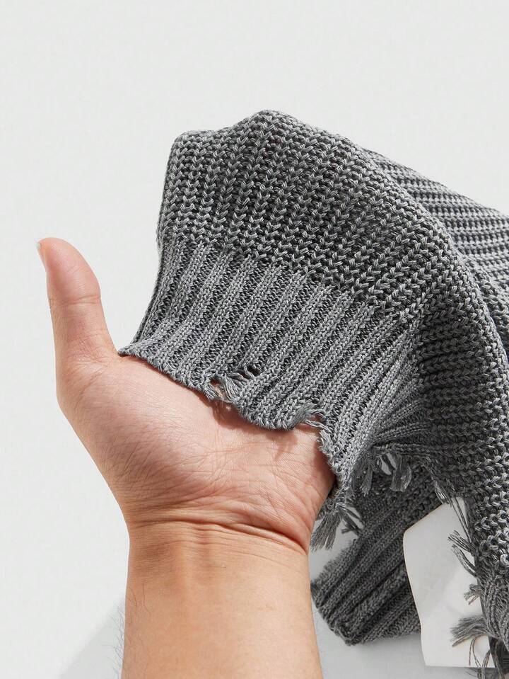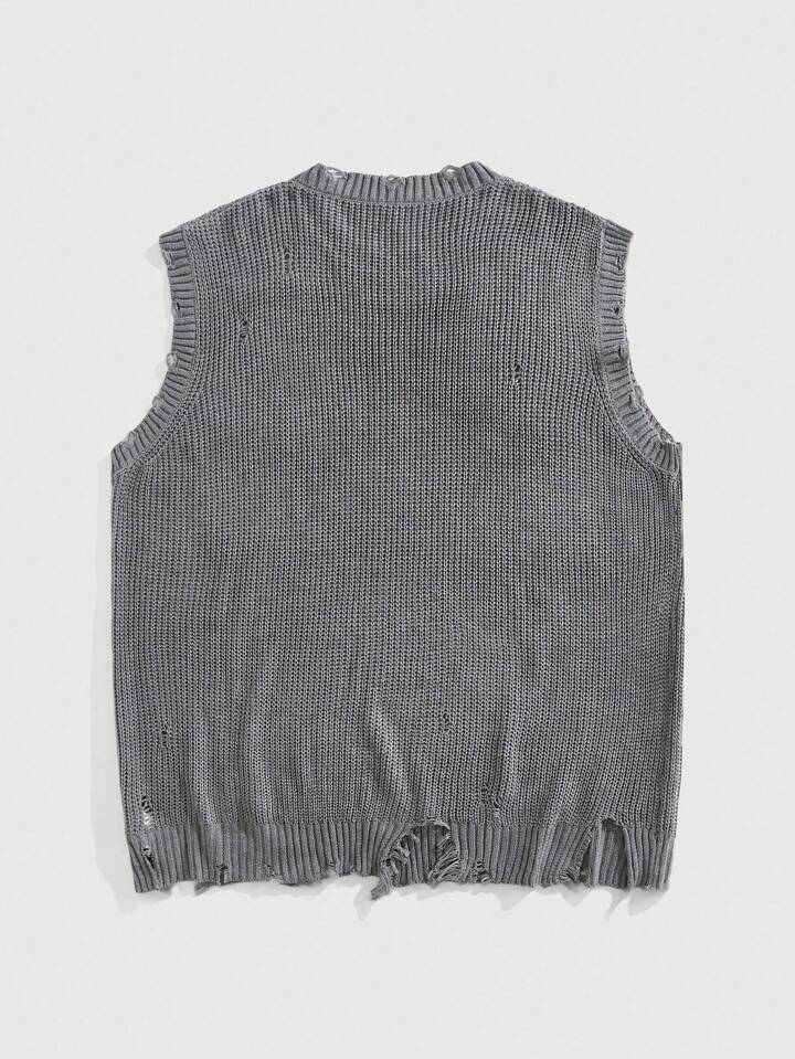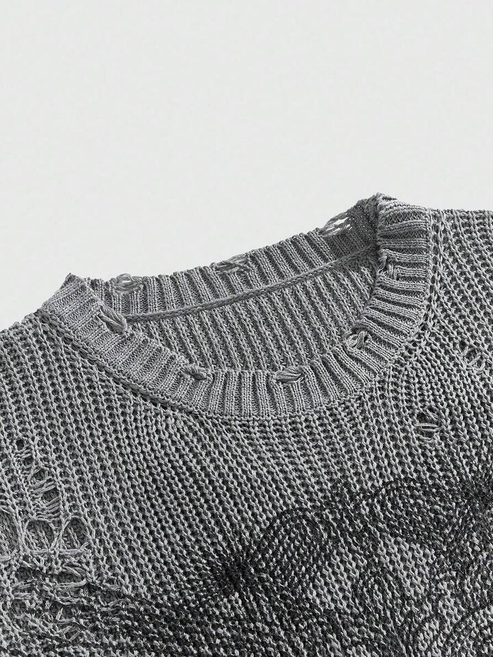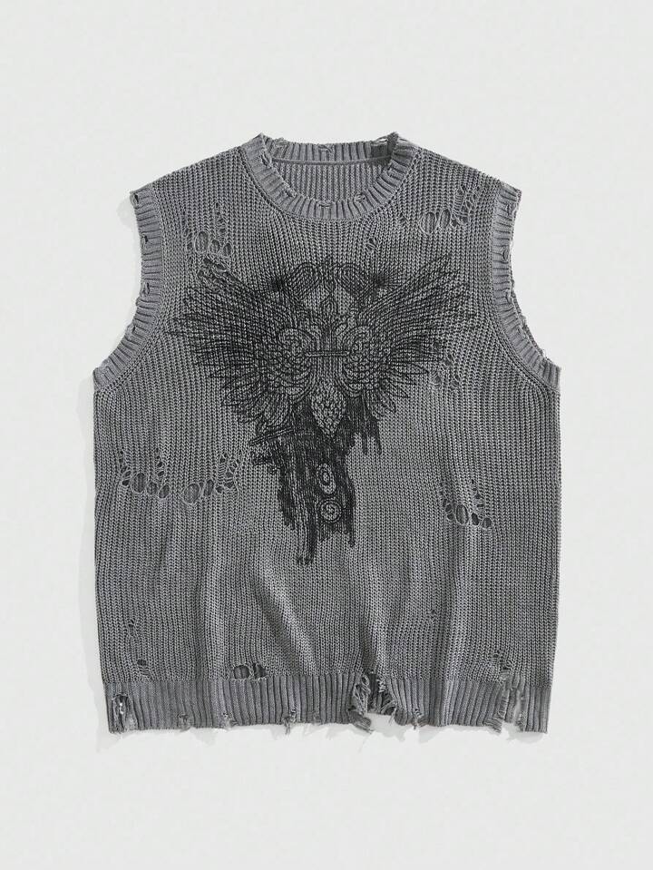Grunge Punk Herren Rundhals-Strickweste mit verwittertem Muster