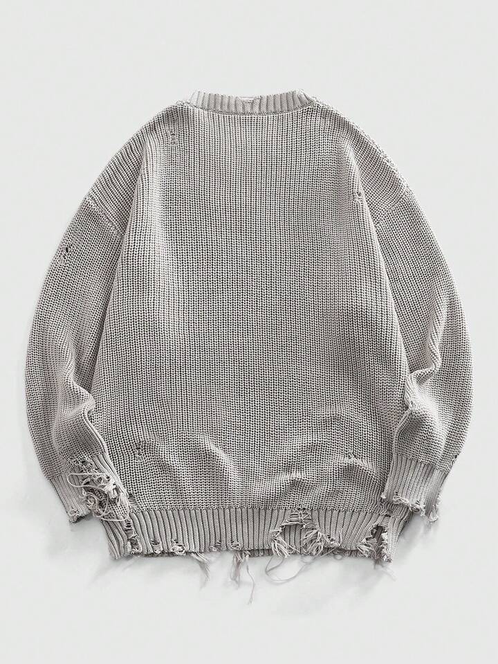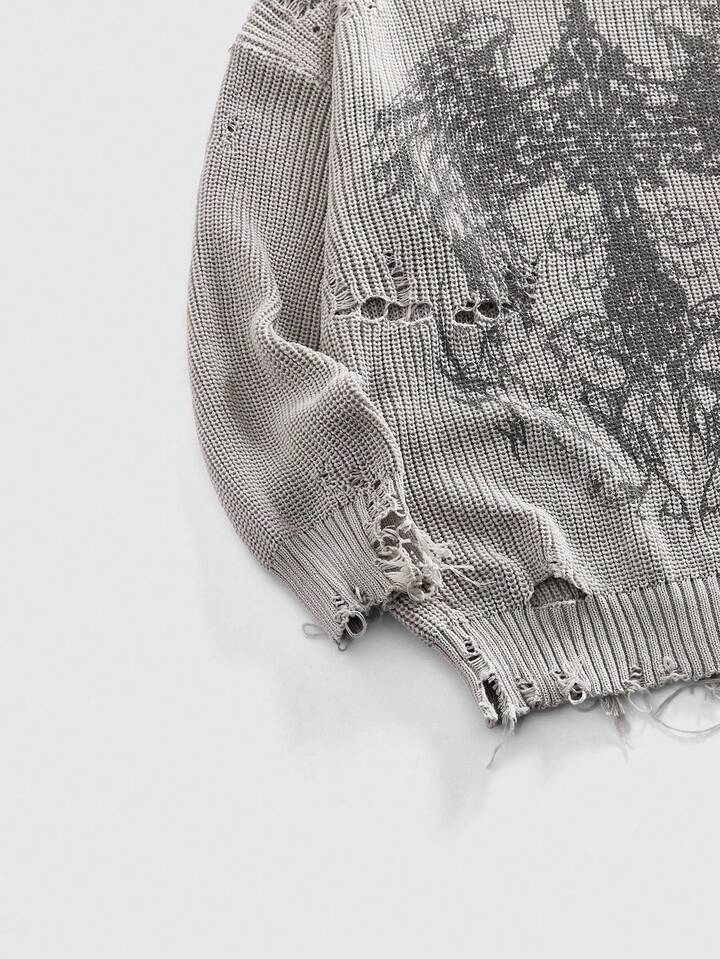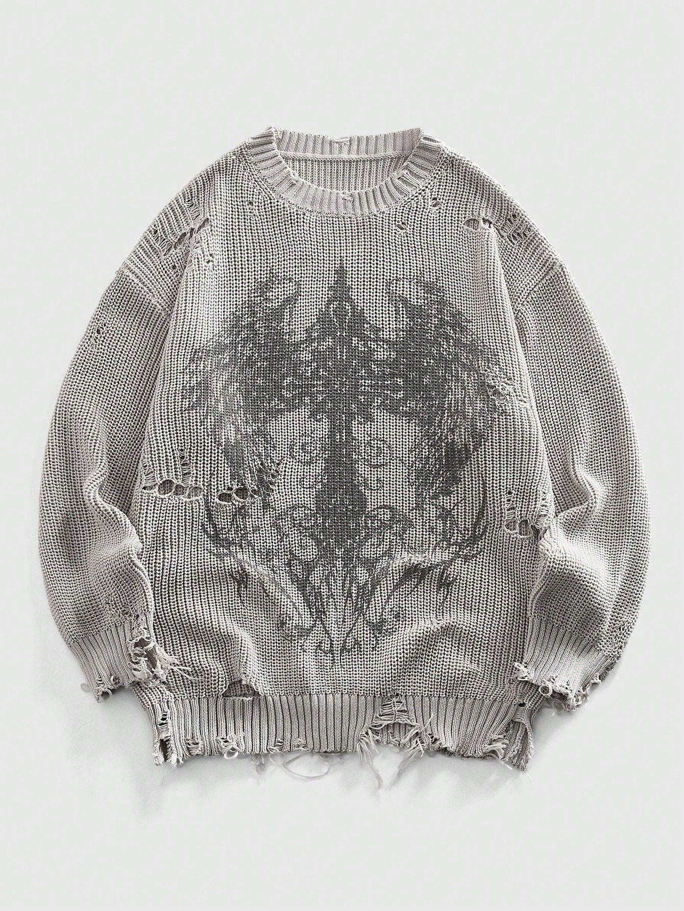 Grunge Punk Herren Distressed Apokalyptisch Bedruckter Strickpullover