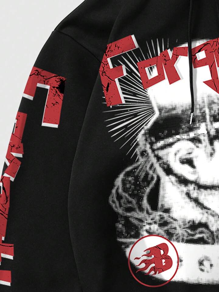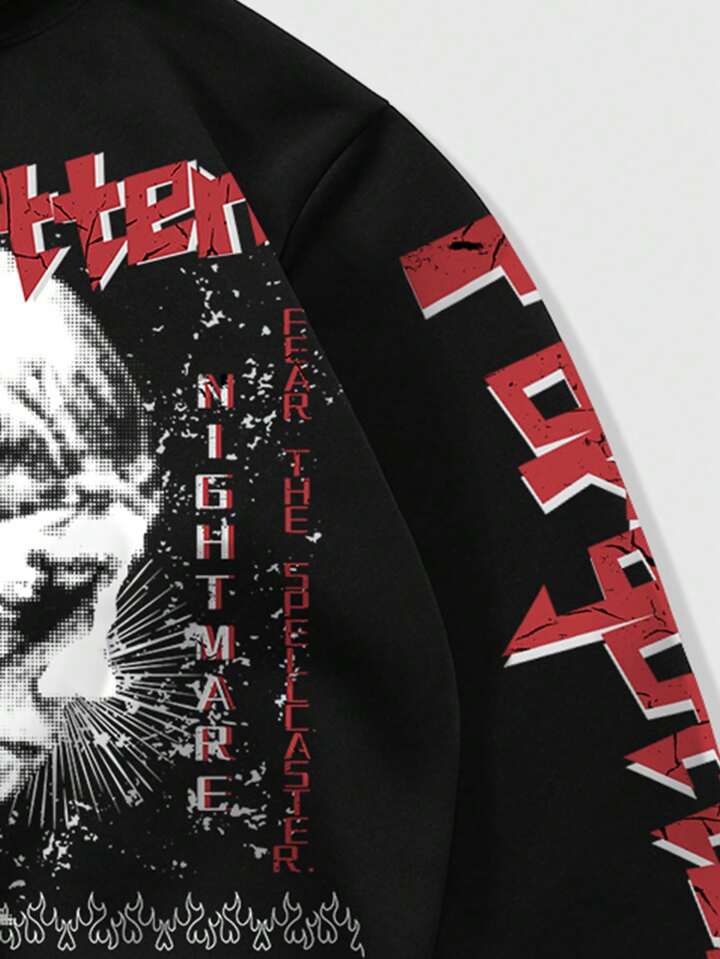Grunge Punk Herren Retro Hoodie mit Aufdruck
