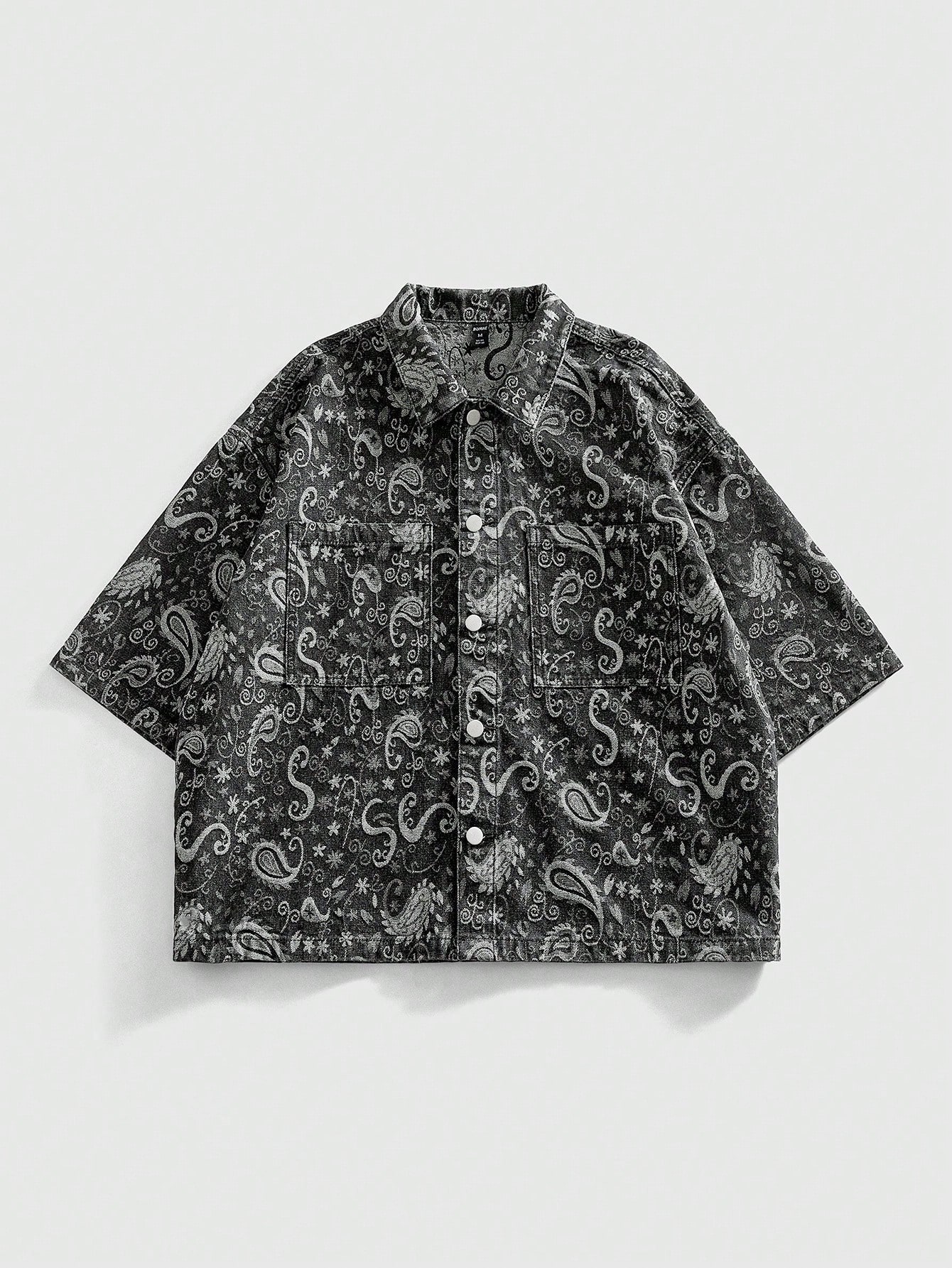 Grunge Punk Herren einfaches bedrucktes Jeanshemd mit Kurzarm