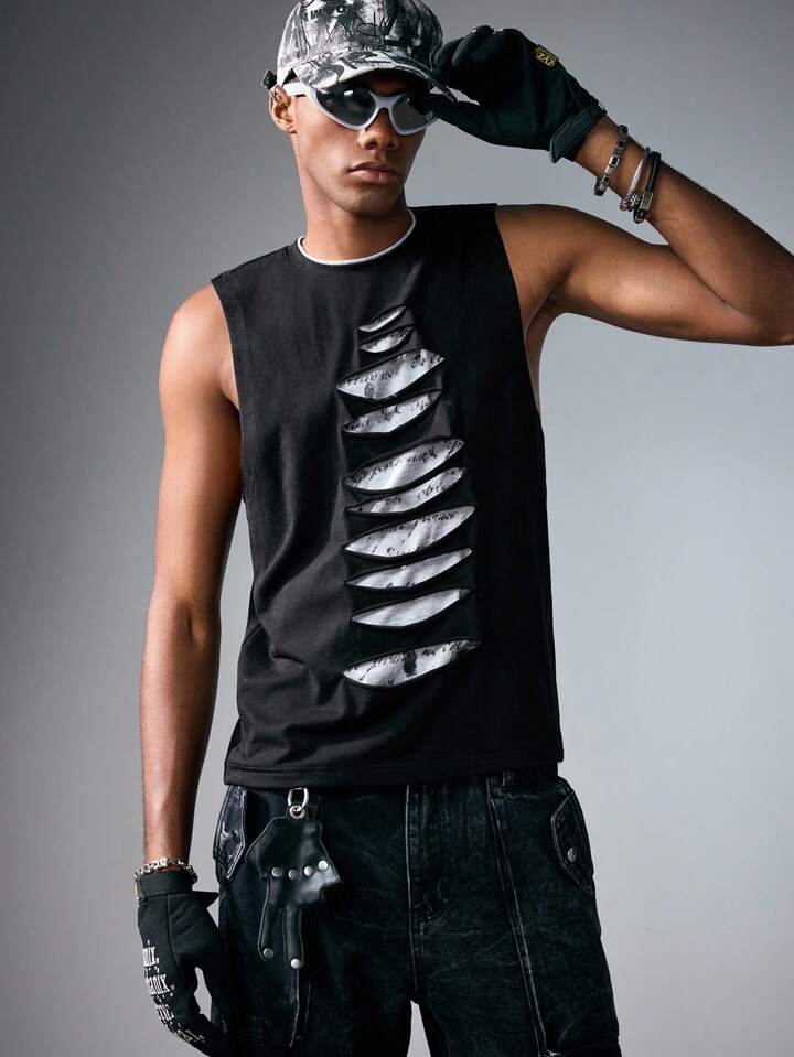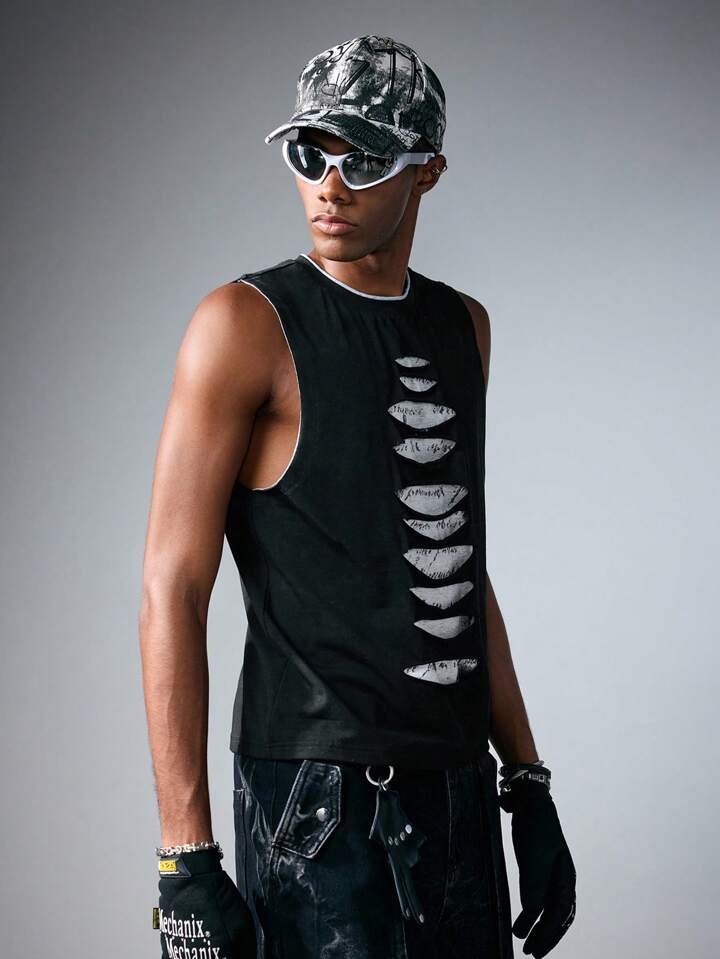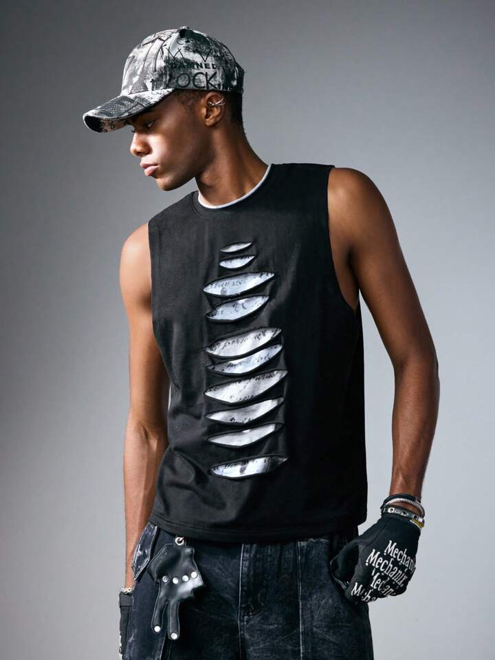 Grunge Punk Herren lässiges Sport Street Style zerrissenes ärmelloses Trägershirt