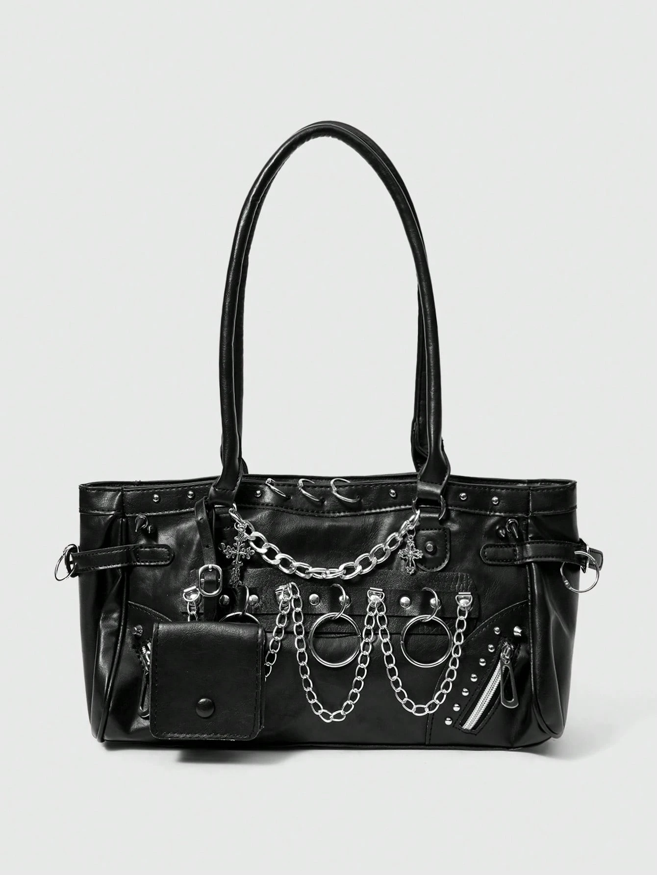 Grunge Punk Metall Ring Niet Kette Y2K Lokomotive Umhängetasche