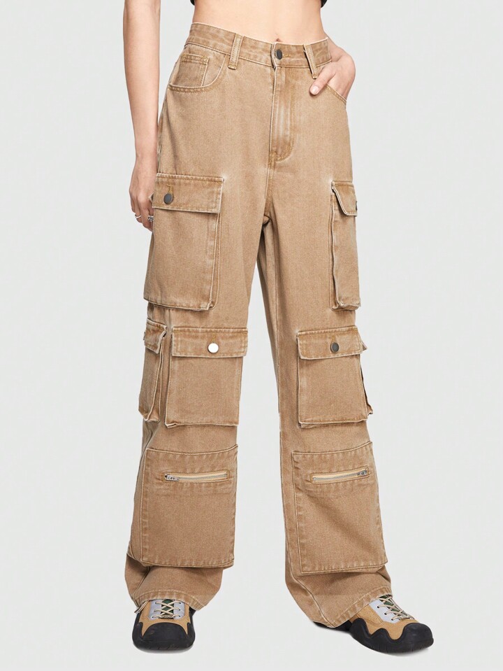 Grunge Punk Cargo-jeanshose Mit Mehreren Taschen