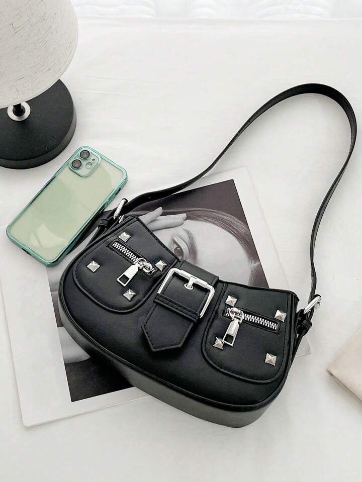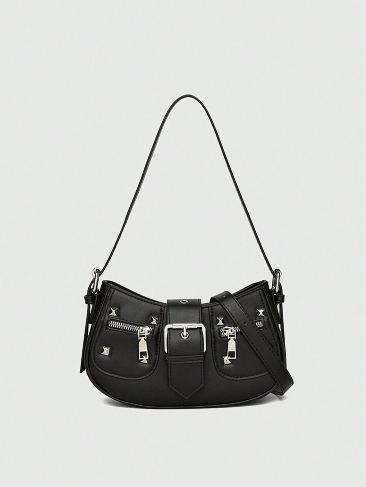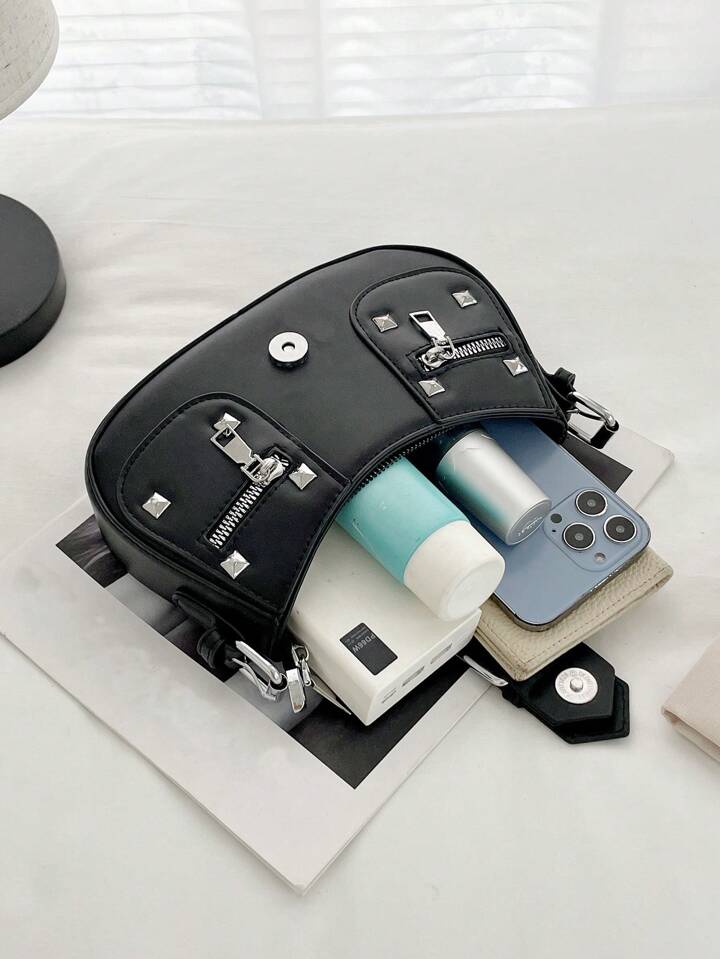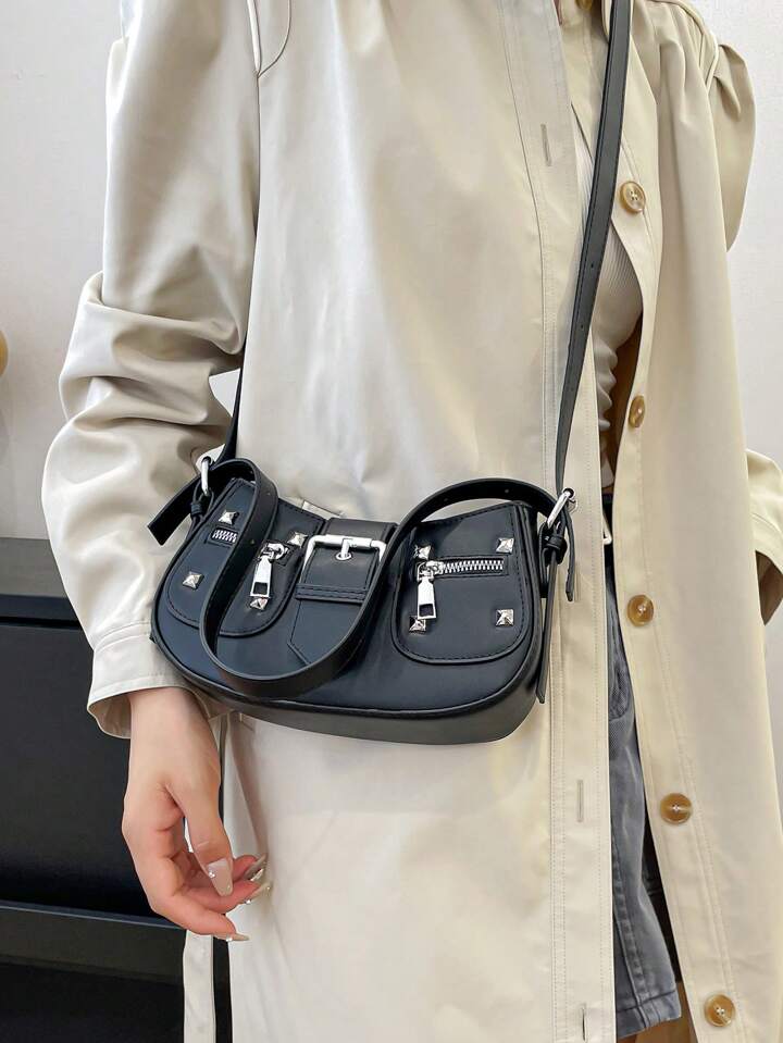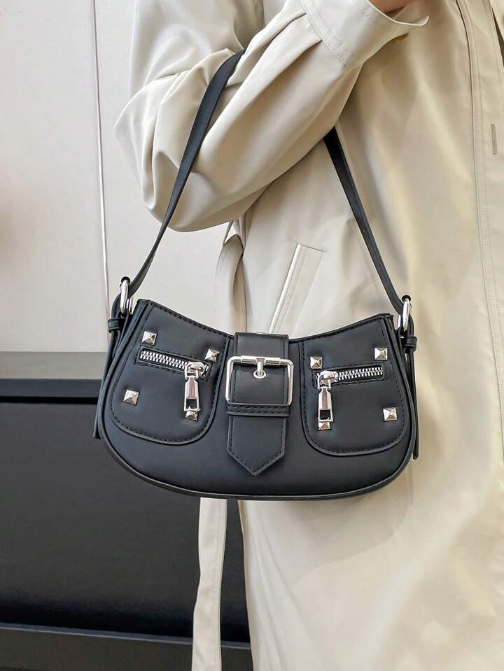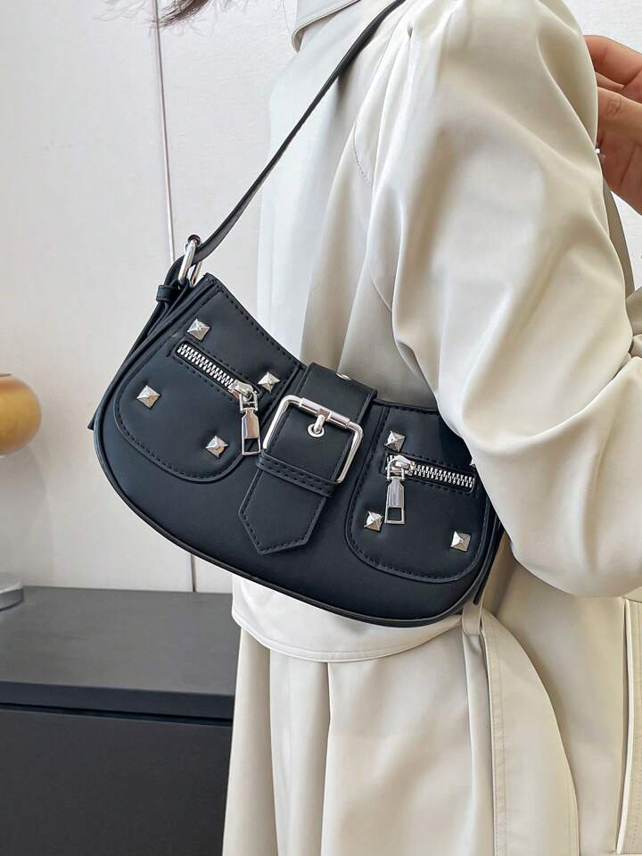 Grunge Punk Neue Nieten besetzte Damen Schultertasche, punk-gotische Frauen Tasche, All-Match Tasche