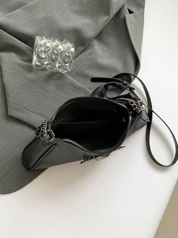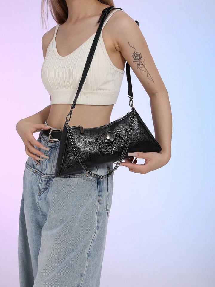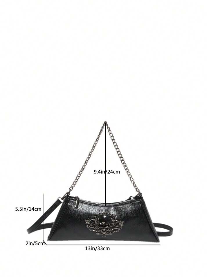 Grunge Punk Neue schwarze Gothic Umhängetasche im Punk-Stil mit Totenkopf-Motiv, Kette und Kreuz-Design für Damen