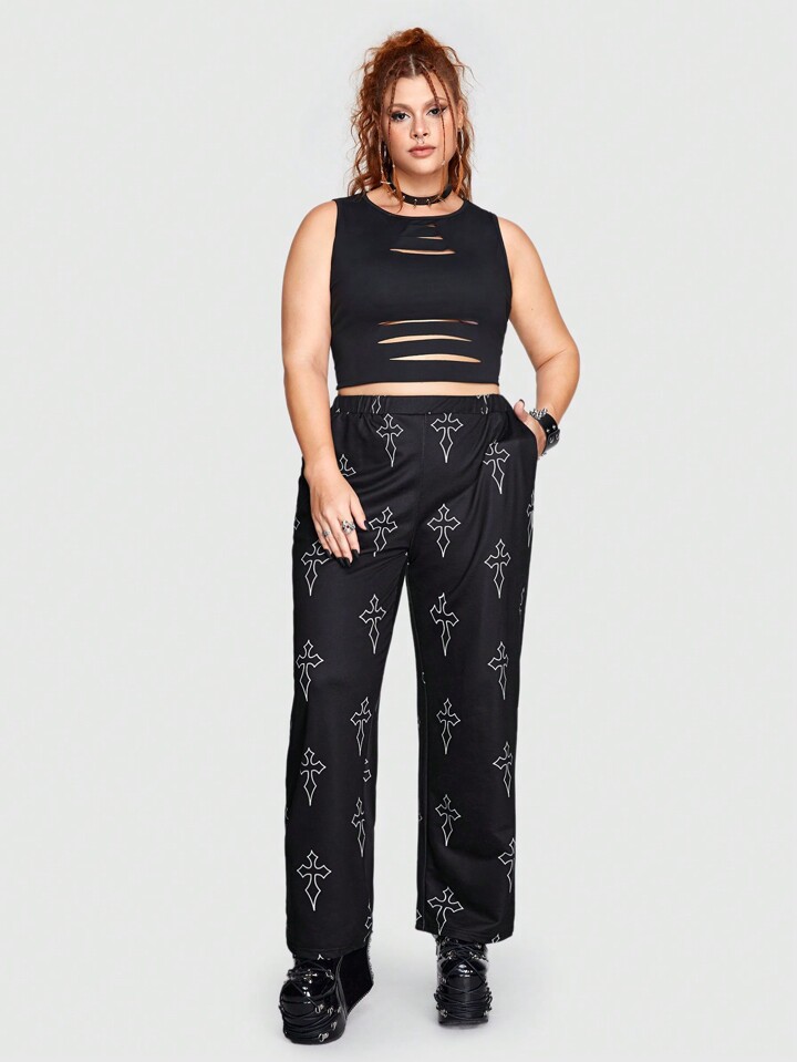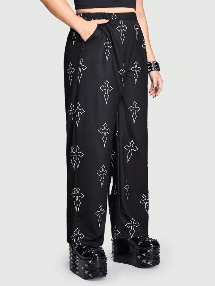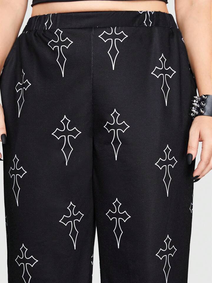 Grunge Punk Große Größen Hose mit schrägen Taschen und Kreuzmuster