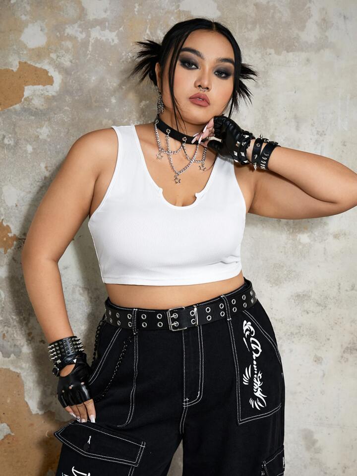Grunge Punk Crop Tank Top mit eingekerbtem Kragen