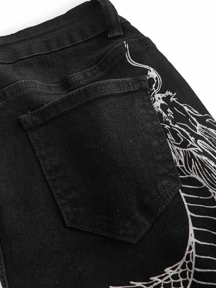 Grunge Punk Große Größen Weite Bein Lässig Denim mit Allover-Muster, Schule