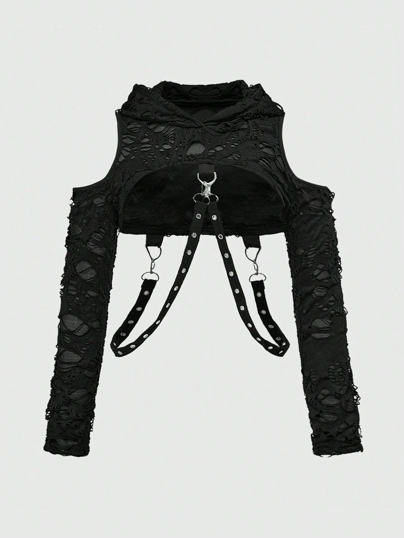 Grunge Punk Sexy Oversize Distressed Hoodie T-Shirt mit Ketten- und Ösendesign, geeignet für Sommer, Strand, Abschluss, Ostern, Konzerte, Nashville-Urlaub, elegantes und süßes Tropenfeststival