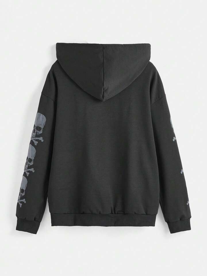 Grunge Punk Kapuzenpullover mit Reißverschluss Schädel Muster,