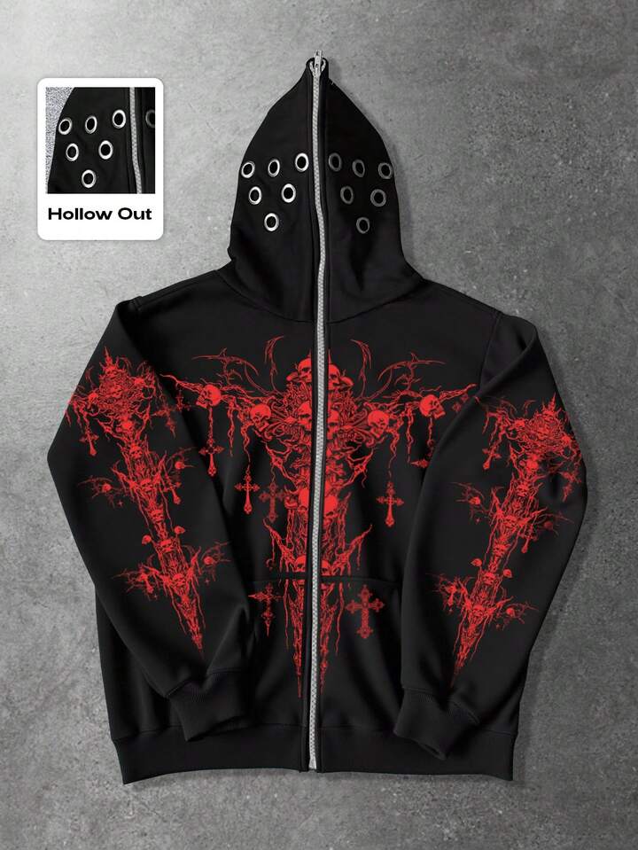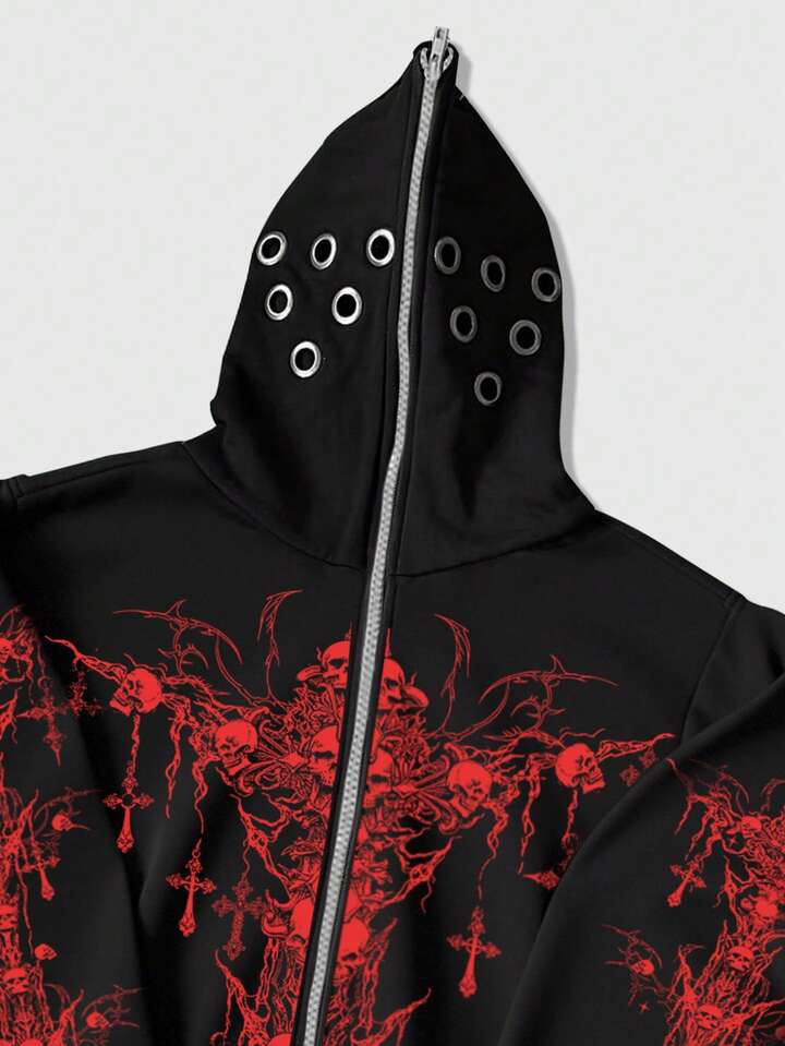 Grunge Punk Punk Street Style Kapuzen-Reißverschluss Fleece Sweatjacke, Herbst/Winter