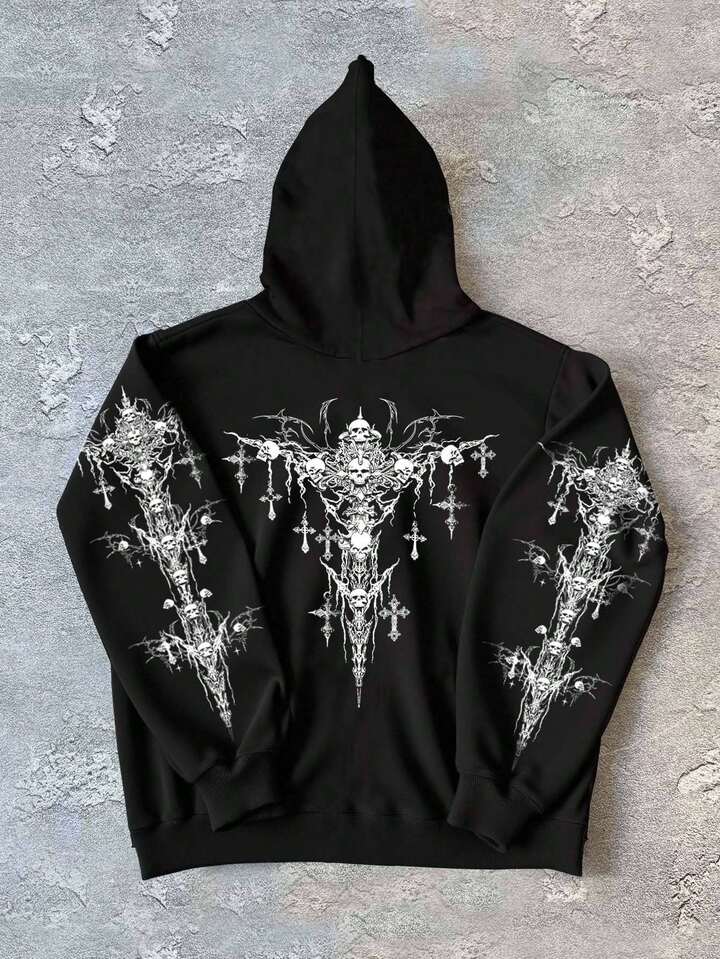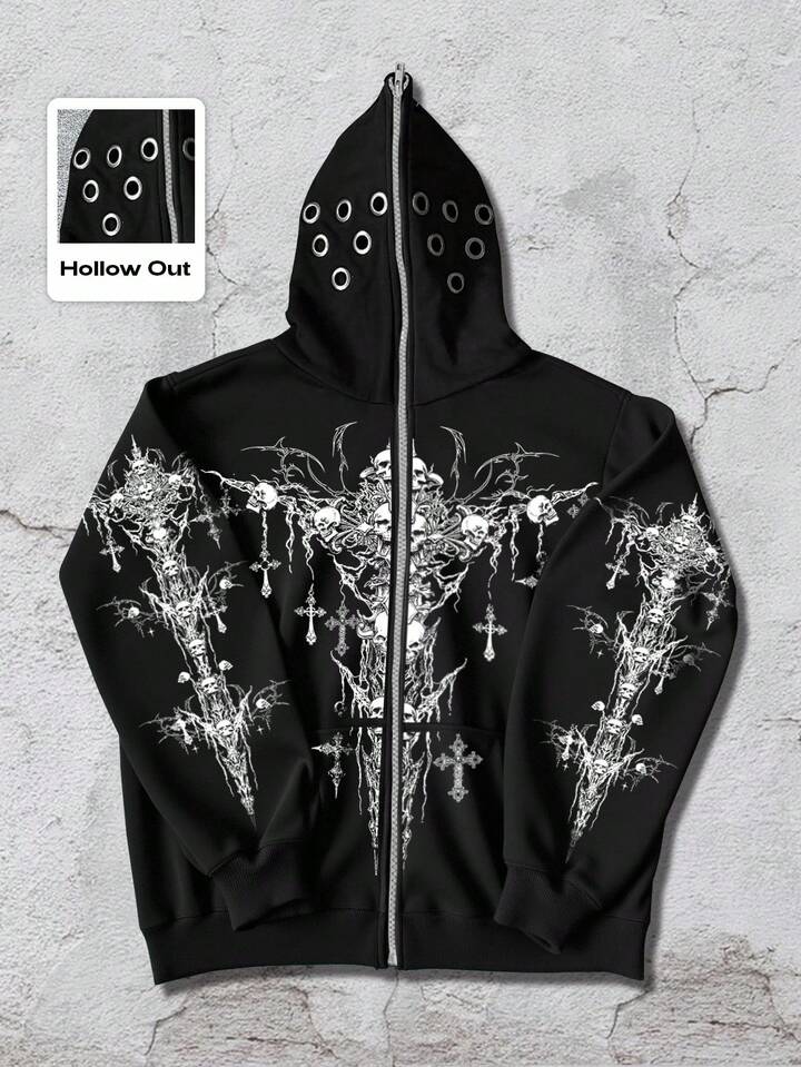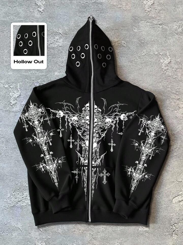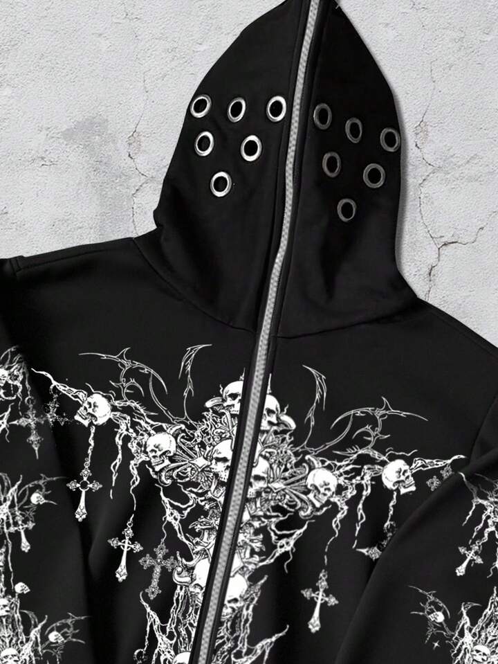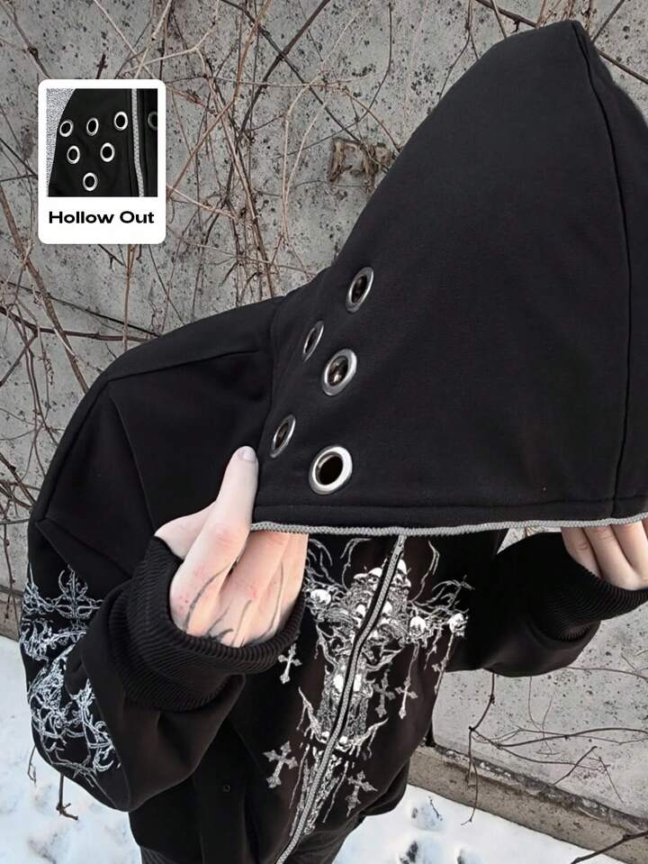 Grunge Punk Punk Street Style Kapuzen-Reißverschluss Thermofutter Sweatjacke, Herbst/Winter