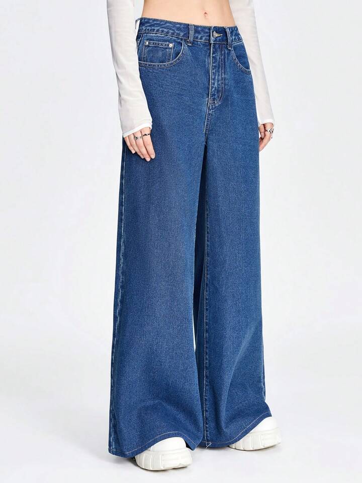 Grunge Punk Punk Street Style Frauen Jeans mit lockerem, weitem Bein und Totenkopf Stickerei