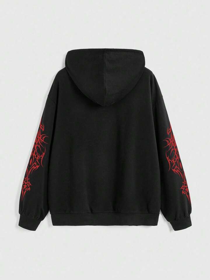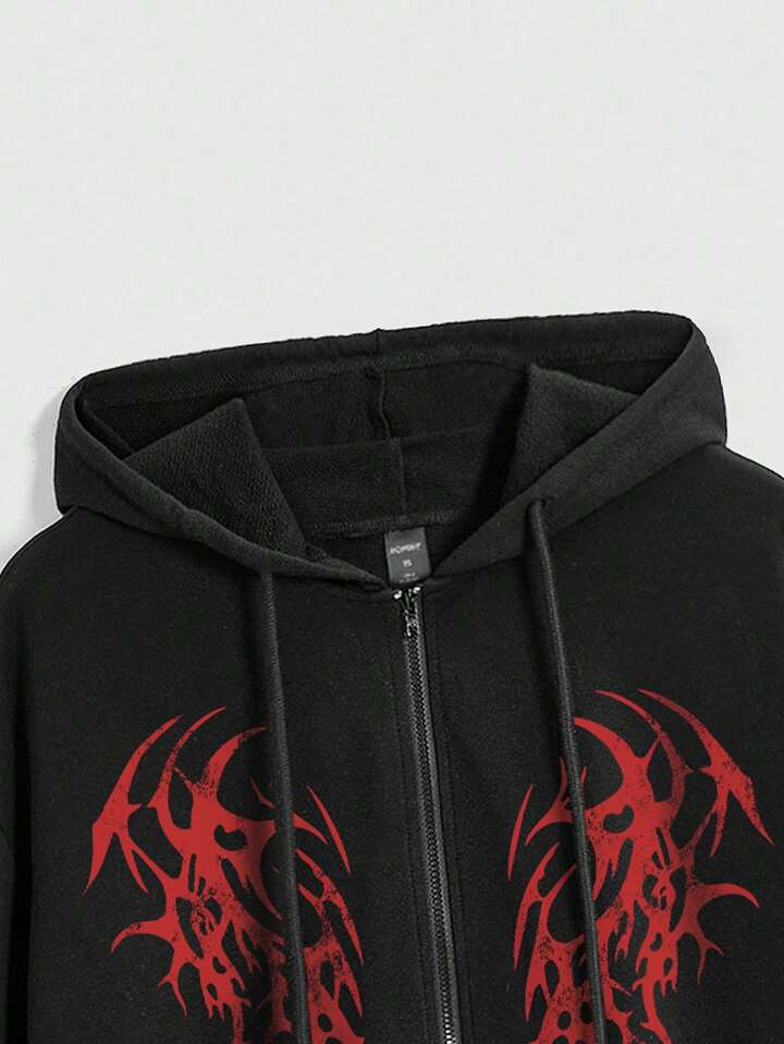 Grunge Punk Punk Dorn Musik Festival Kapuzen-Strickstoff Japanische Baumwolle Schwarz Sweatshirt mit Grafik, Reißverschlusstaschen, Damen Sweatshirt