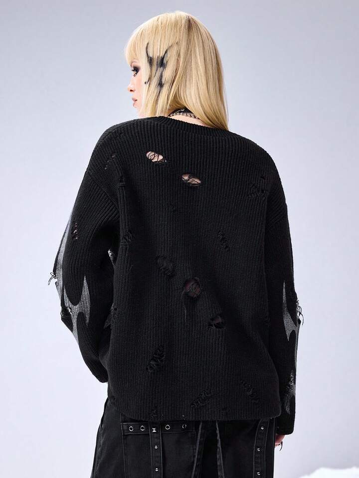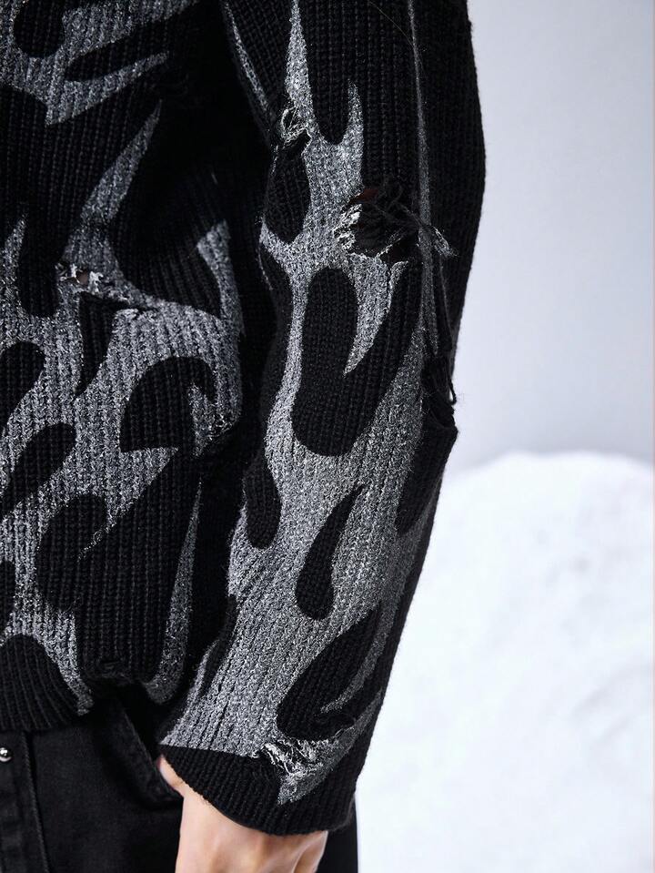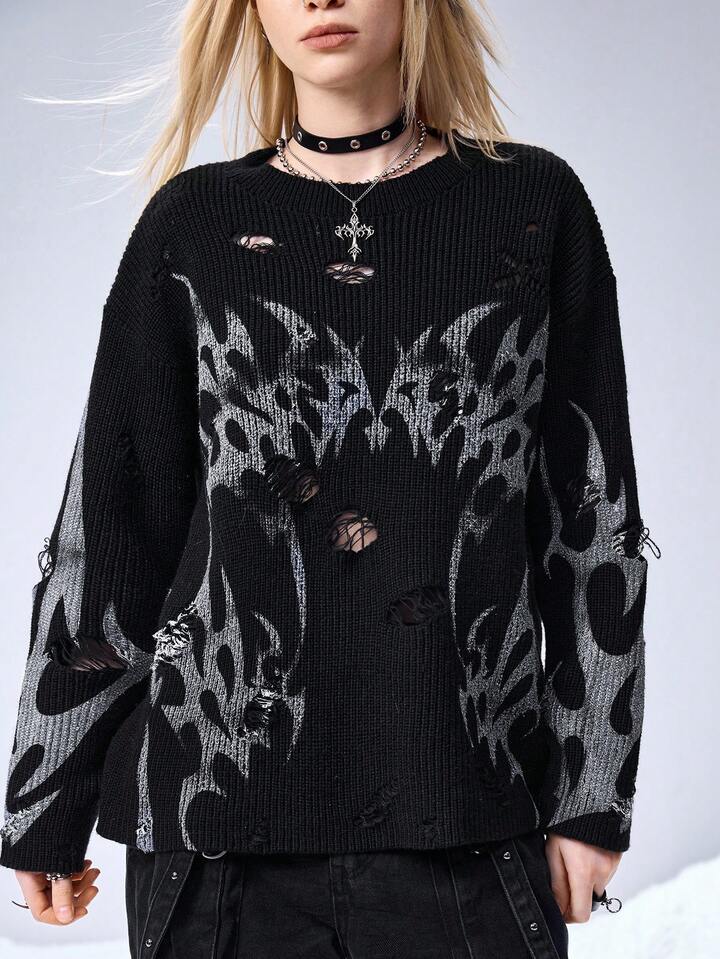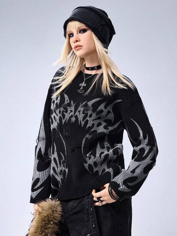 Grunge Punk Punk Y3K Dornen Muster Loose Pullover Sweater
