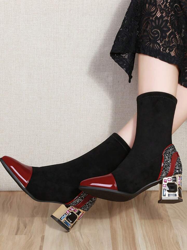 Grunge Punk Sock Boots Mit Dickem Absatz Und Strassdetail