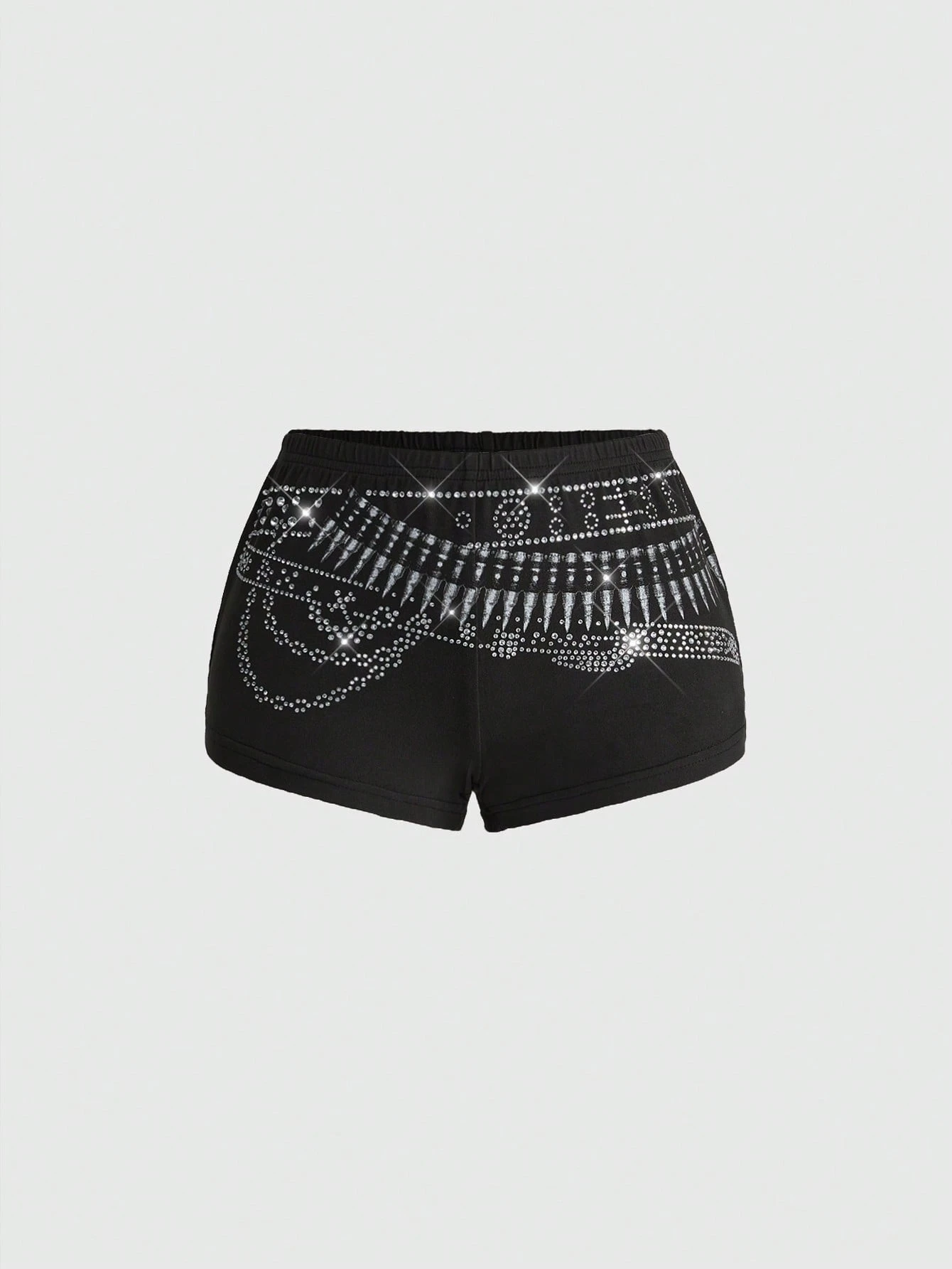Grunge Punk Strass-Nieten Metall Patronen-Gürtel Muster sexy ultratief sitzende Mini-Shorts
