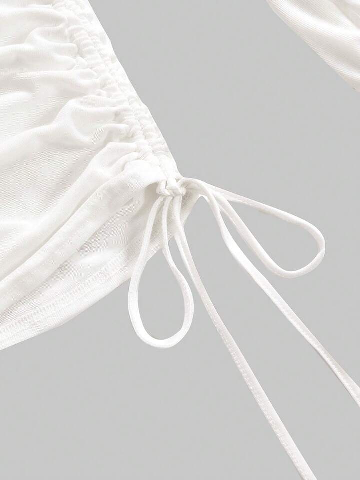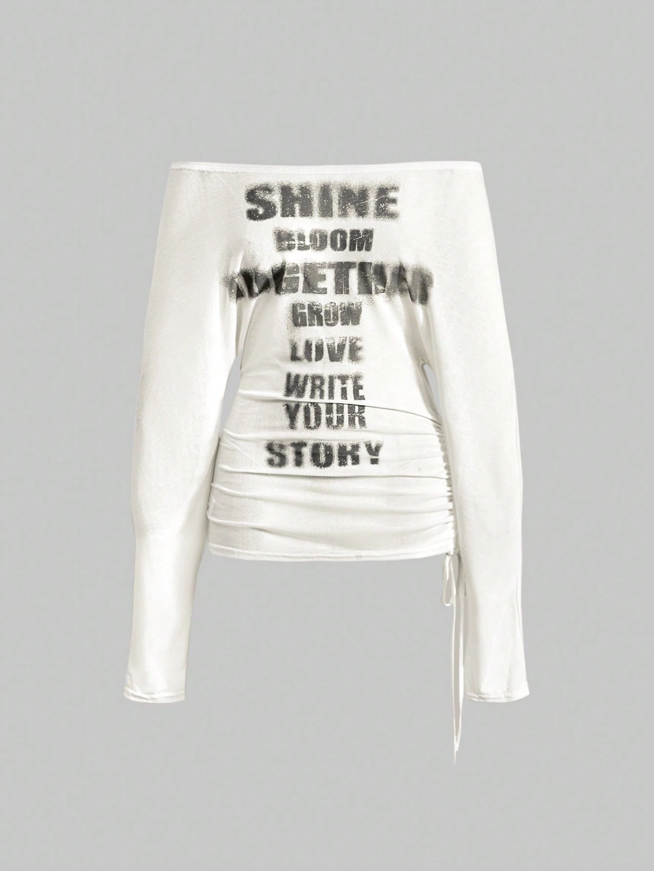 Grunge Punk Romantisches Punk-Kreuz- und Buchstaben-Muster Off-Shoulder Langarm T-Shirt für Frauen