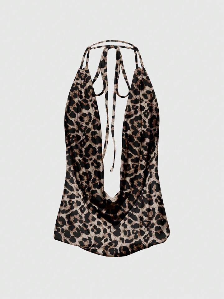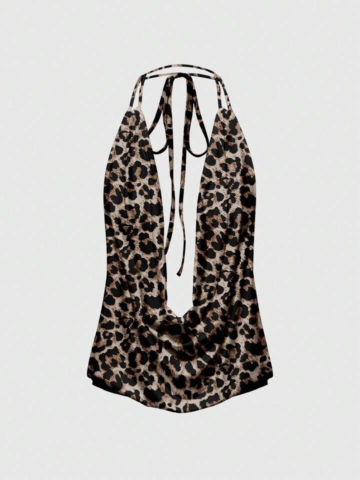 Grunge Punk Sexy Leoparden-Muster Camisole mit tiefem Ausschnitt, rückenfreiem Design und Schleife für Frauen