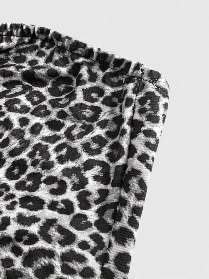 Grunge Punk Sexy Strass Kreuz- und Leoparden Muster dehnbarer anliegender Crop Top für Damen
