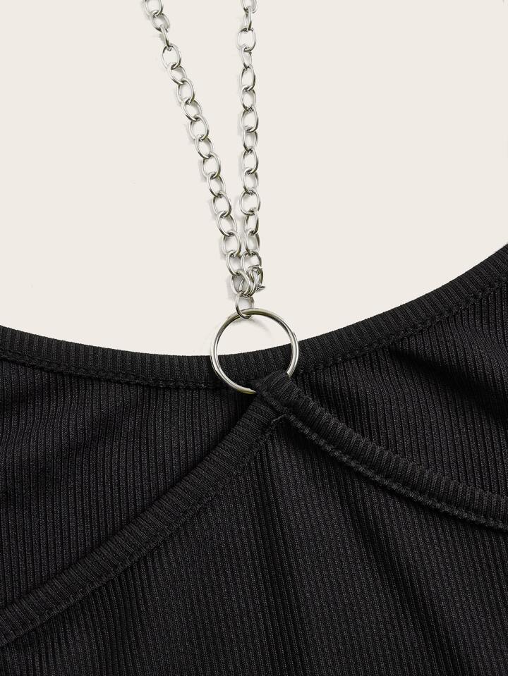 Grunge Punk Trägerhemd mit Schädel- und Blumenmuster und Kettendetails, Schule