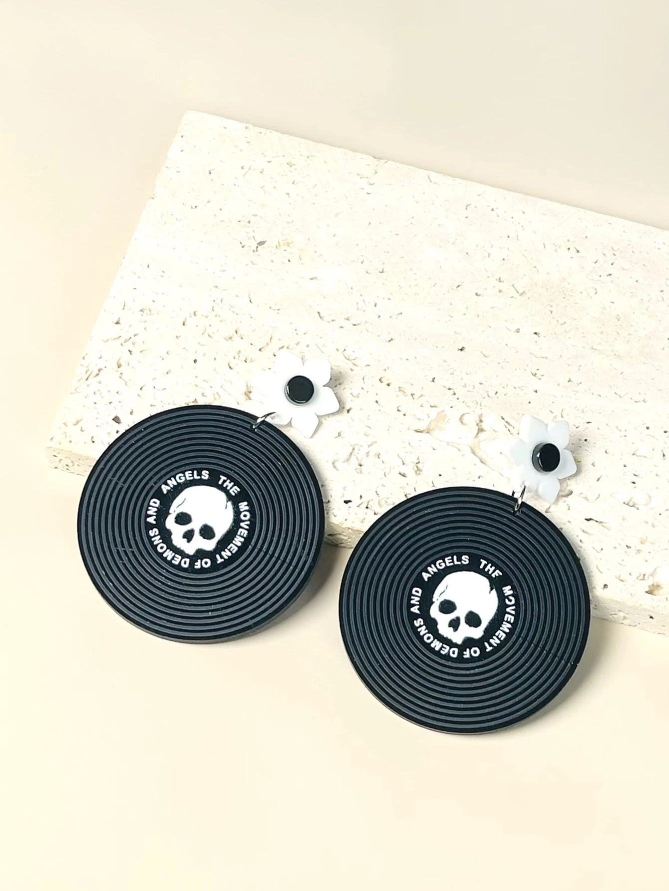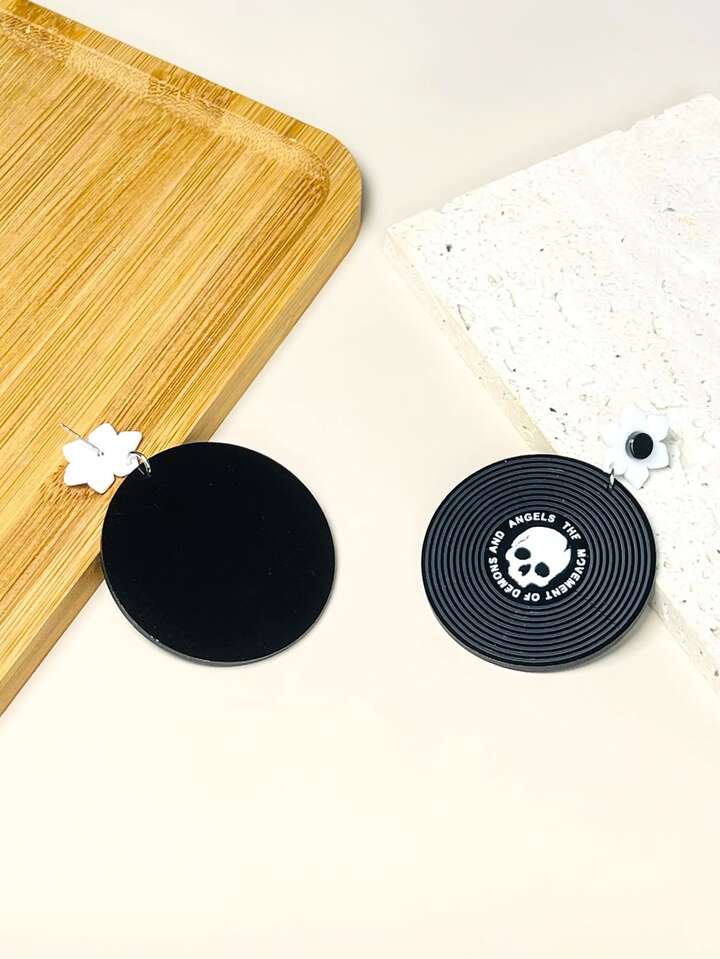 Grunge Punk Runde Ohrringe mit Schädel & Buchstaben Grafik