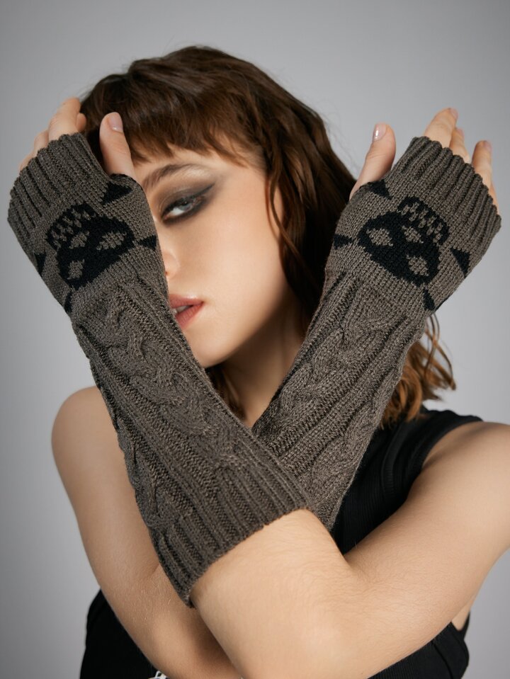 Grunge Punk Fingerlose Handschuhe Schädel Muster