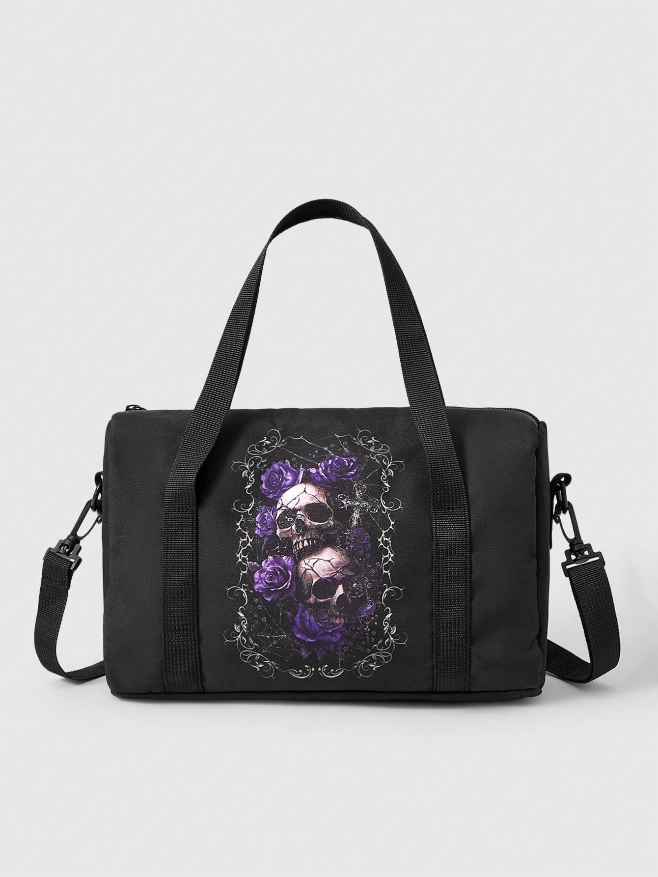 Grunge Punk Totenkopf Umhängetasche mit lila Blumen