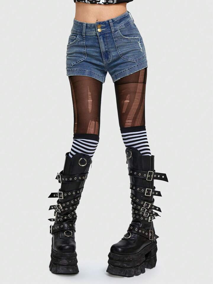 Grunge Punk Denim Shorts mit schrägen Taschen,