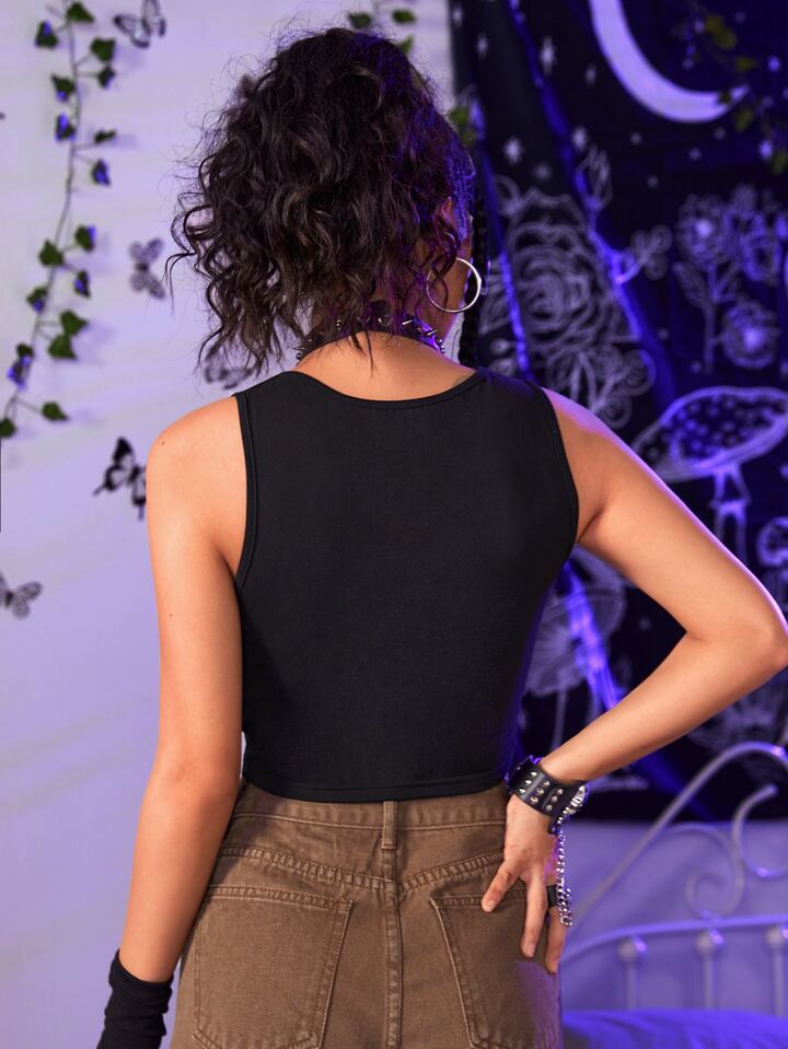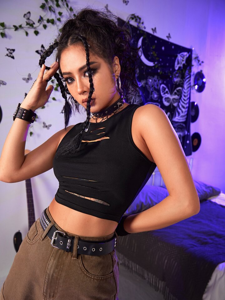 Grunge Punk Einfarbiges ausgeschnittenes Crop-Top, Schulbedarf