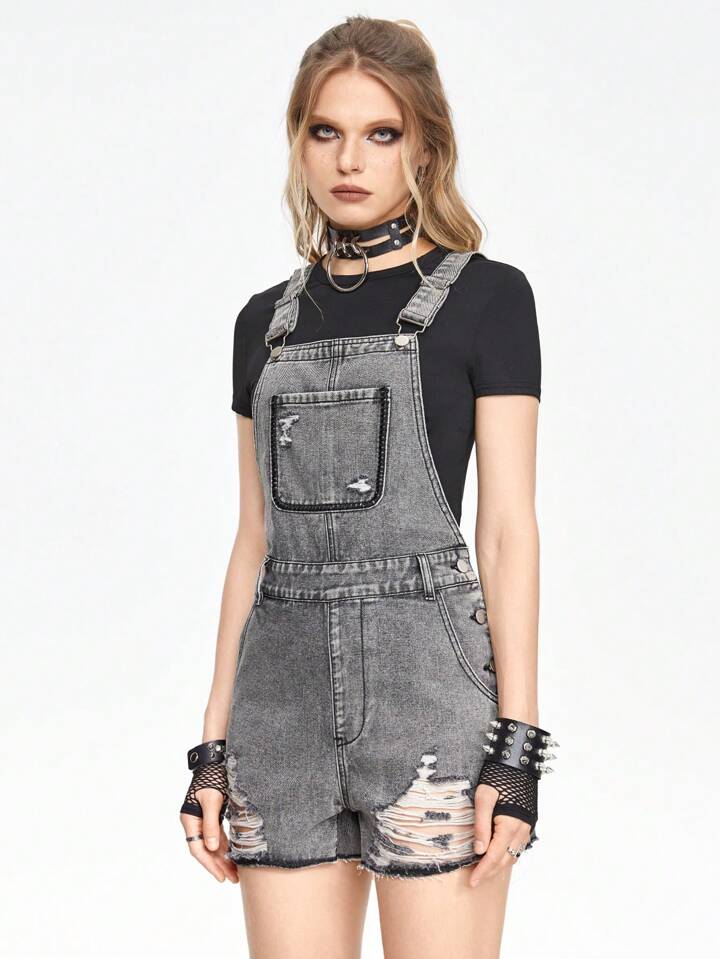Grunge Punk Frauen Spinne-Stickerei Denim Latzhose und Jumpsuit