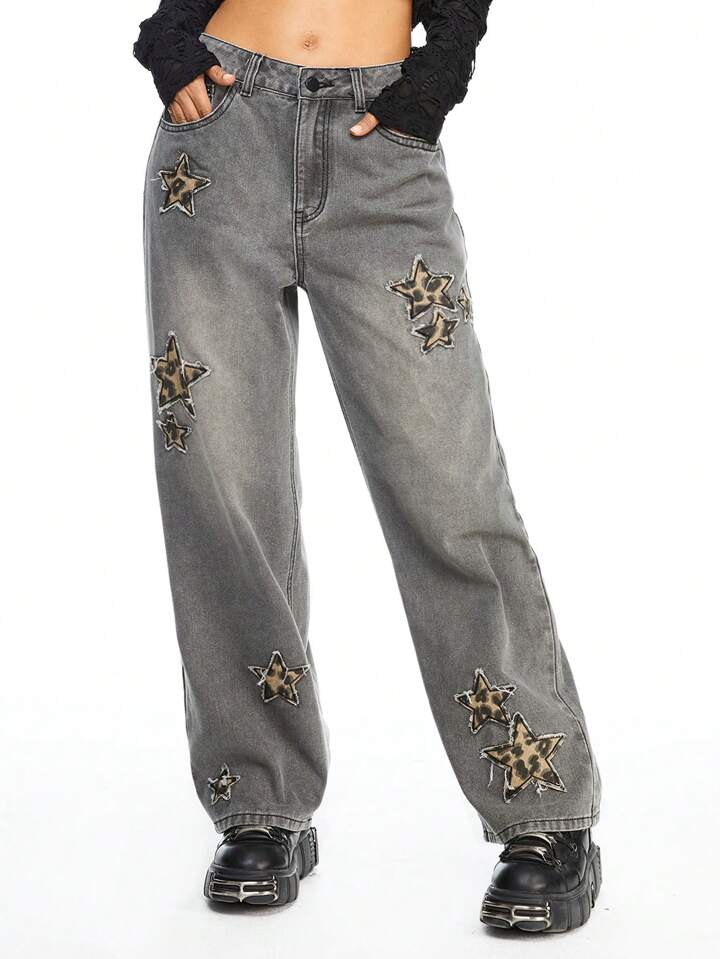 Grunge Punk Jungen Boyfriend Jeans mit Sternenstickerei, minimalistisch und modisch für den täglichen Gebrauch
