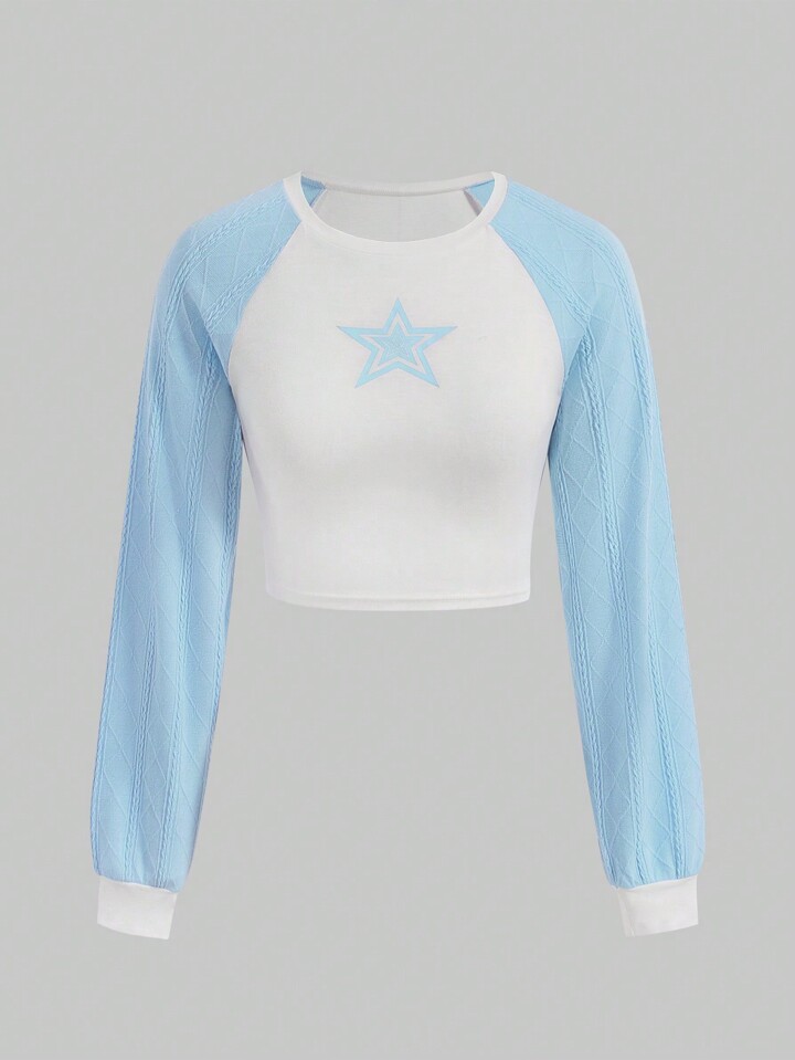Grunge Punk T-Shirt mit Stern Muster, Farbblock, Raglanärmeln
