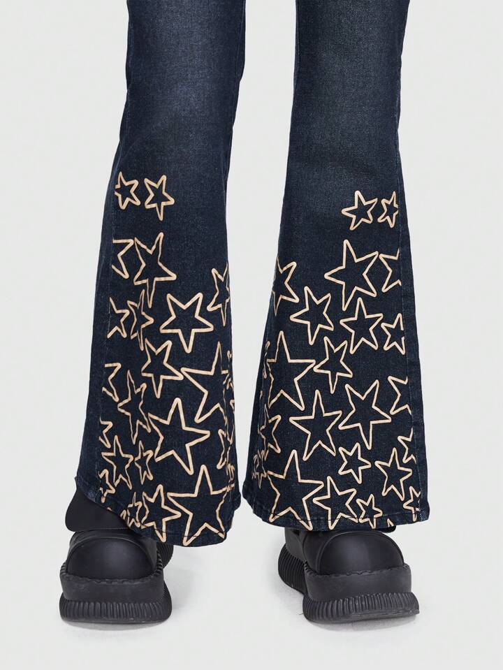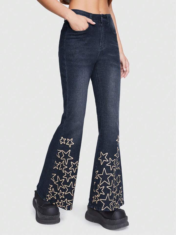 Grunge Punk Jeans mit ausgestelltem Bein und Sternenmuster