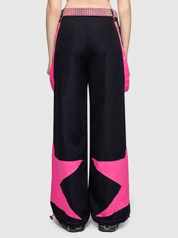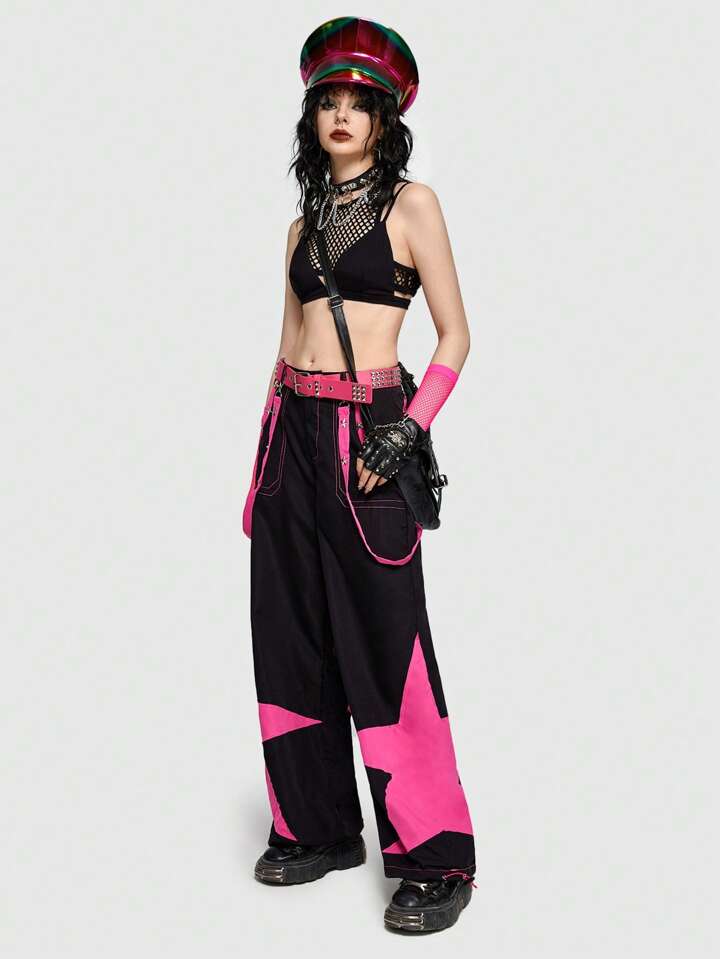 Grunge Punk Hose mit weiten Beinen, Stern Muster,
