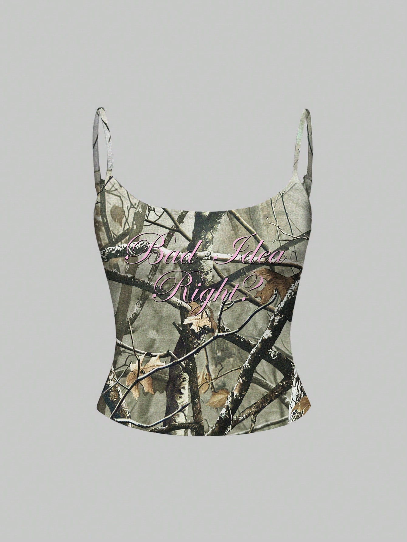 Grunge Punk Street-Style sexy tiefer V-Ausschnitt ärmelloser Crop Top mit Kontrastfarbe und Zweig-Slogan, geeignet für den Sommer