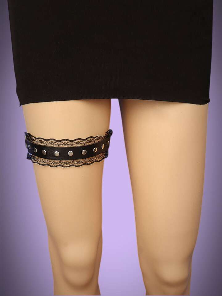Grunge Punk Strumpfhalter mit Nieten Dekor, Bogenkante