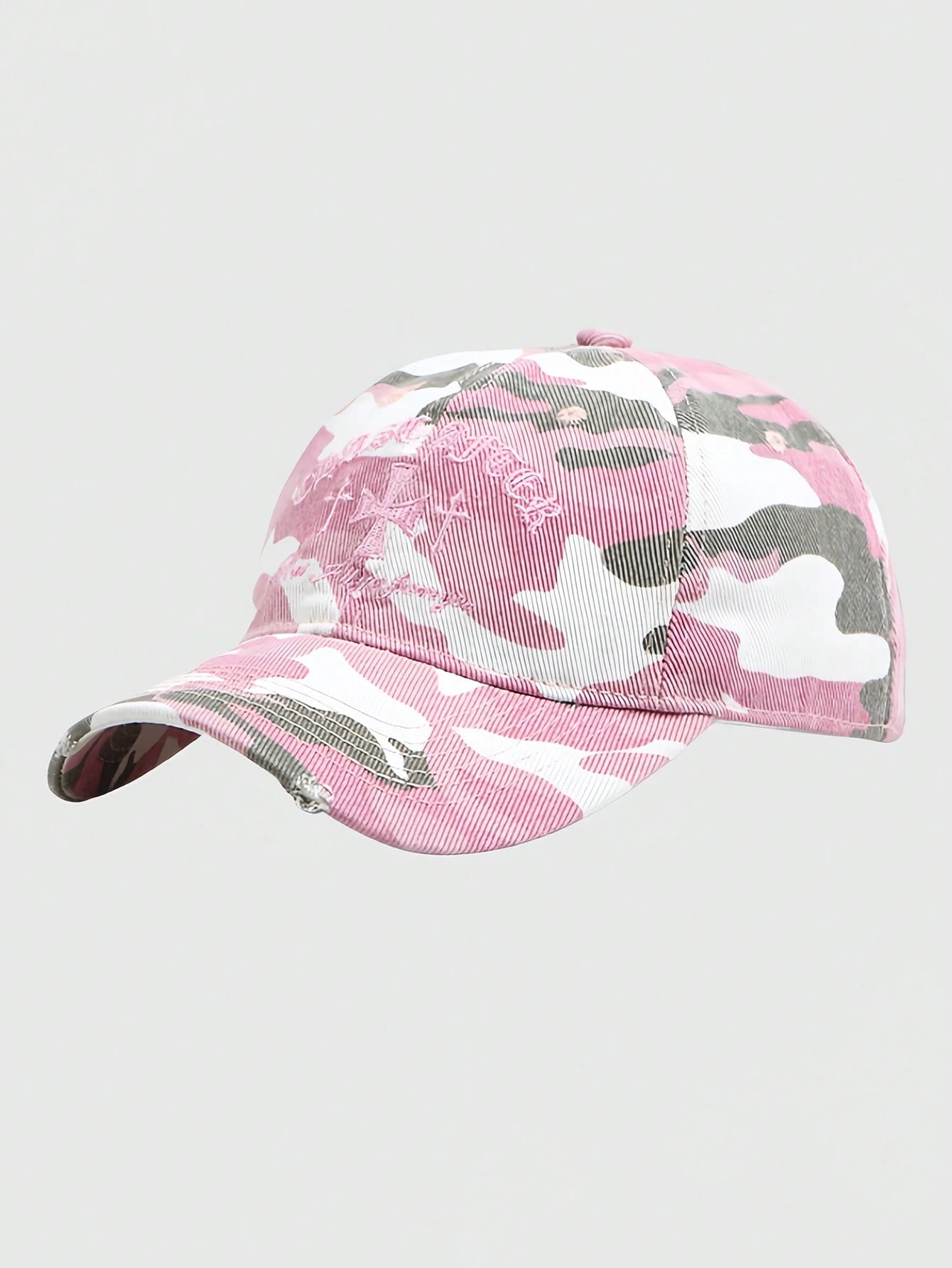 Grunge Punk Vintage Distressed Bestickte Camouflage Snapback Mütze, Unisex Street Style Soft Top Baseball Kappe, Vielseitig