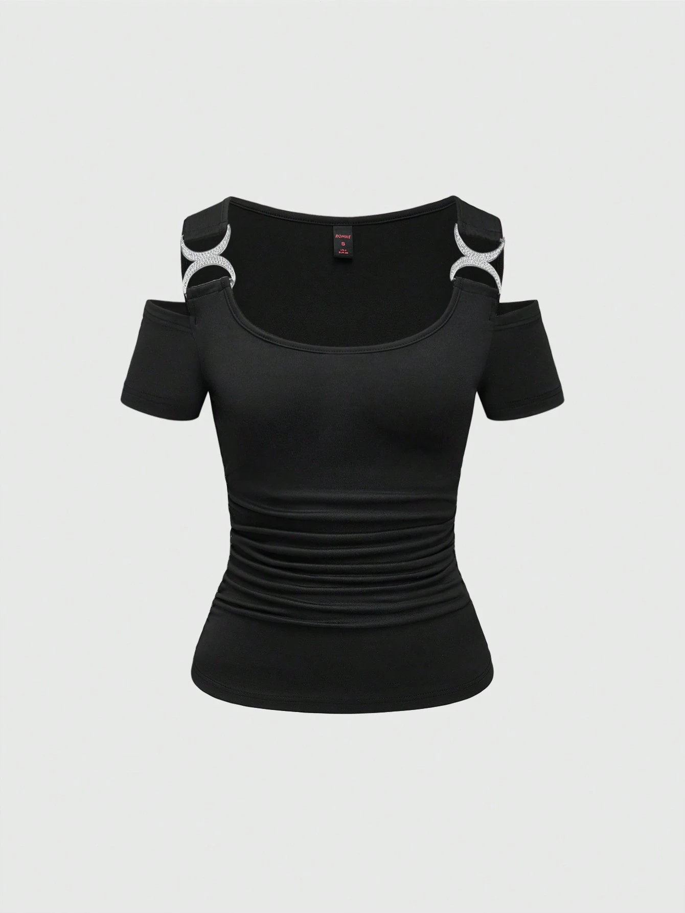 Grunge Punk Vintage Valentinstag sexy einsschultriges Kristall Muster Slim Fit Damen T-Shirt