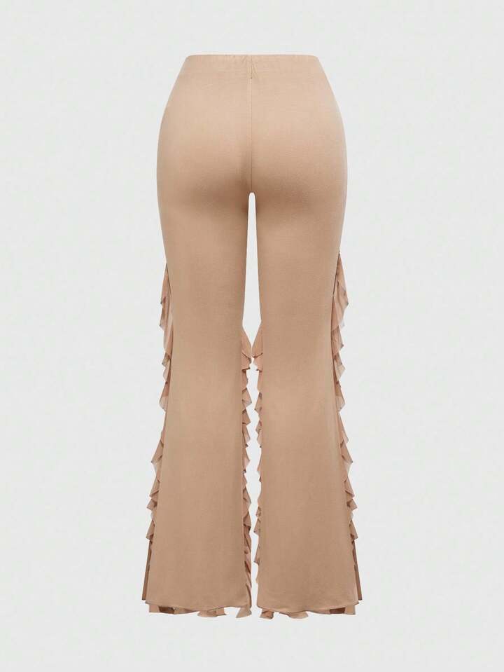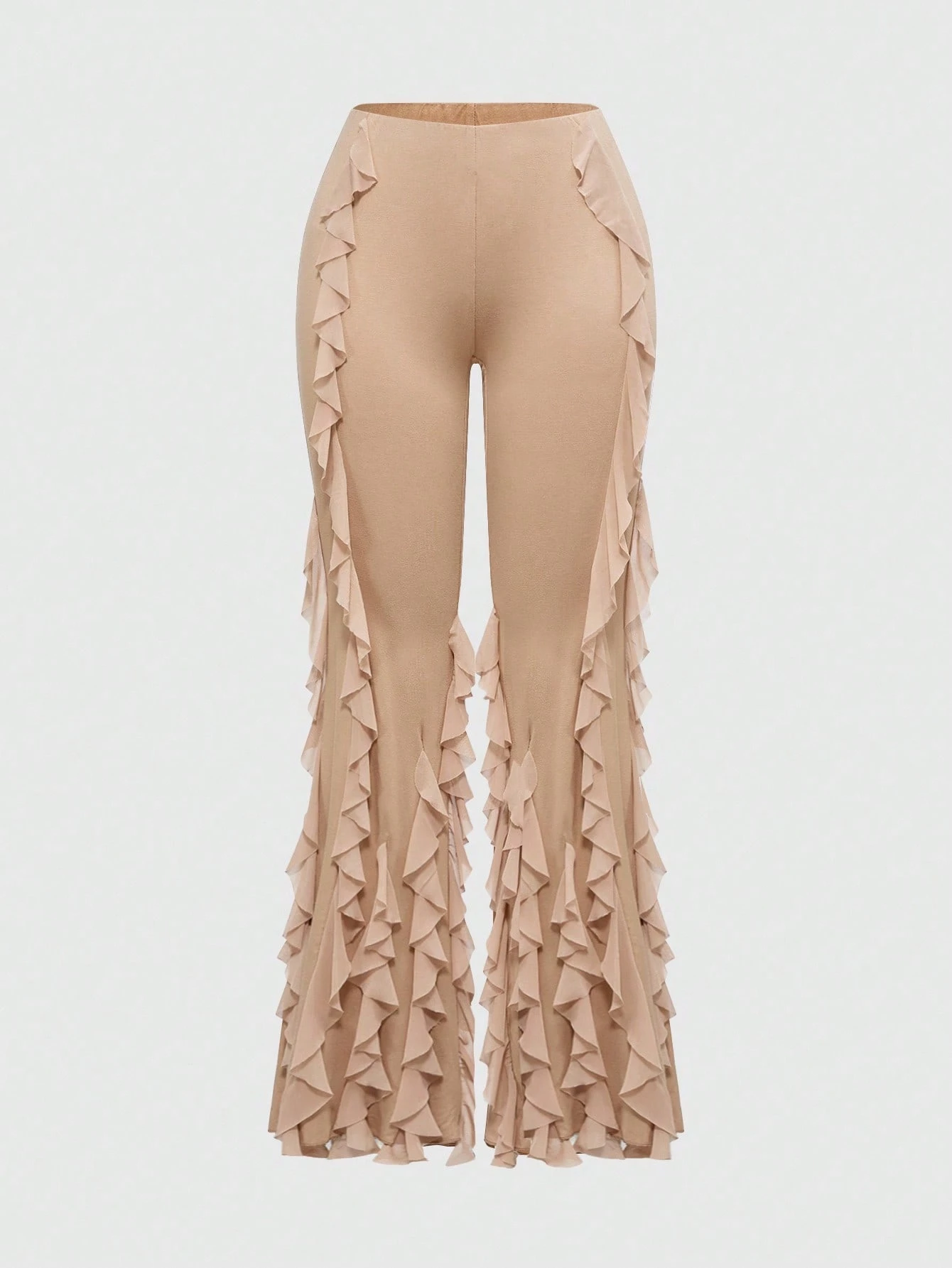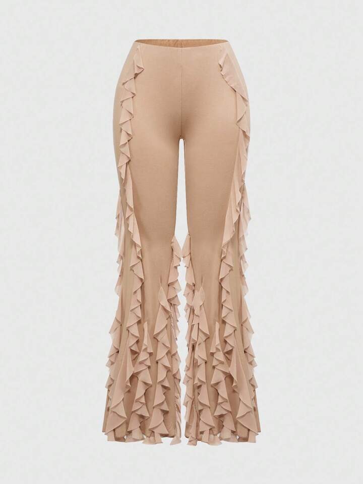 Grunge Punk Weite Flare Hose für Frauen im Hippie-Romantik-Stil mit gerüschtem Saum, fließend, sexy, mit extrem tief sitzendem Bund