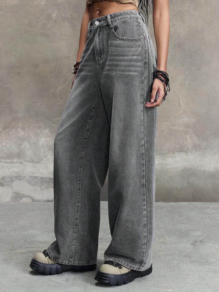 Grunge Punk Flügel Schädel bestickte weite Damenjeans