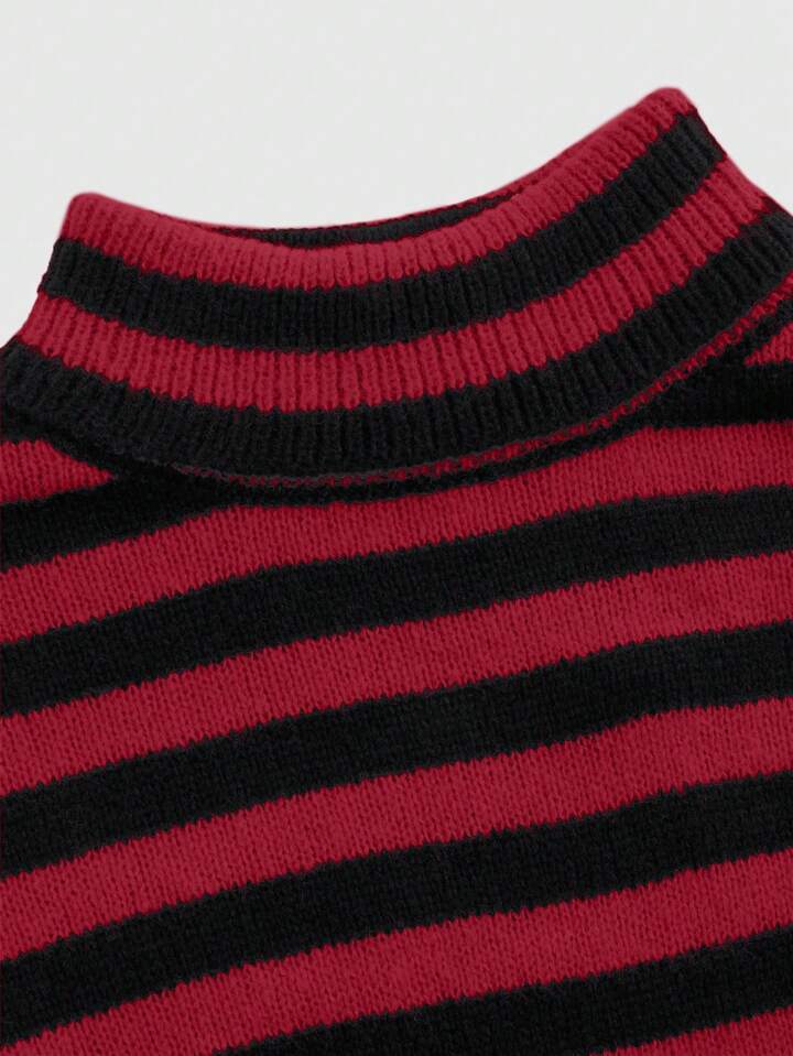 Grunge Punk Damen lässiger Pullover mit hohem Kragen, rot-schwarz gestreift, super kurze Glockenärmel