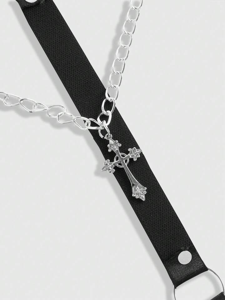 Grunge Punk Damen Lingerie Accessoires mit Kreuz-Metall-Kette, Punk-Stil