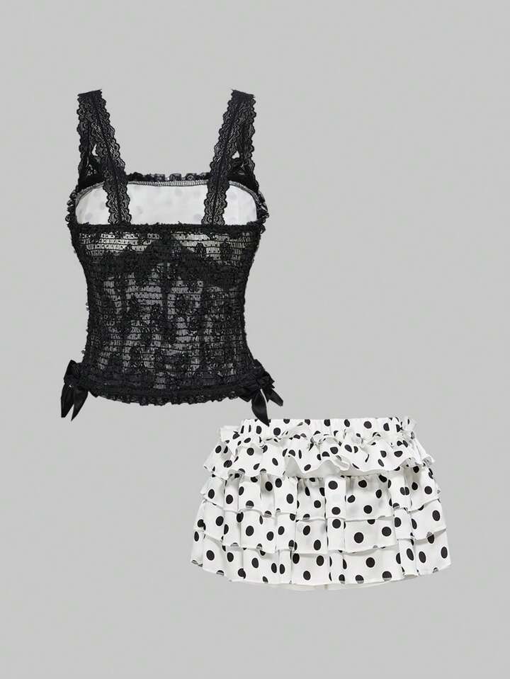 Grunge Punk Zwei-Teiler Outfit für Damen für den täglichen Gebrauch