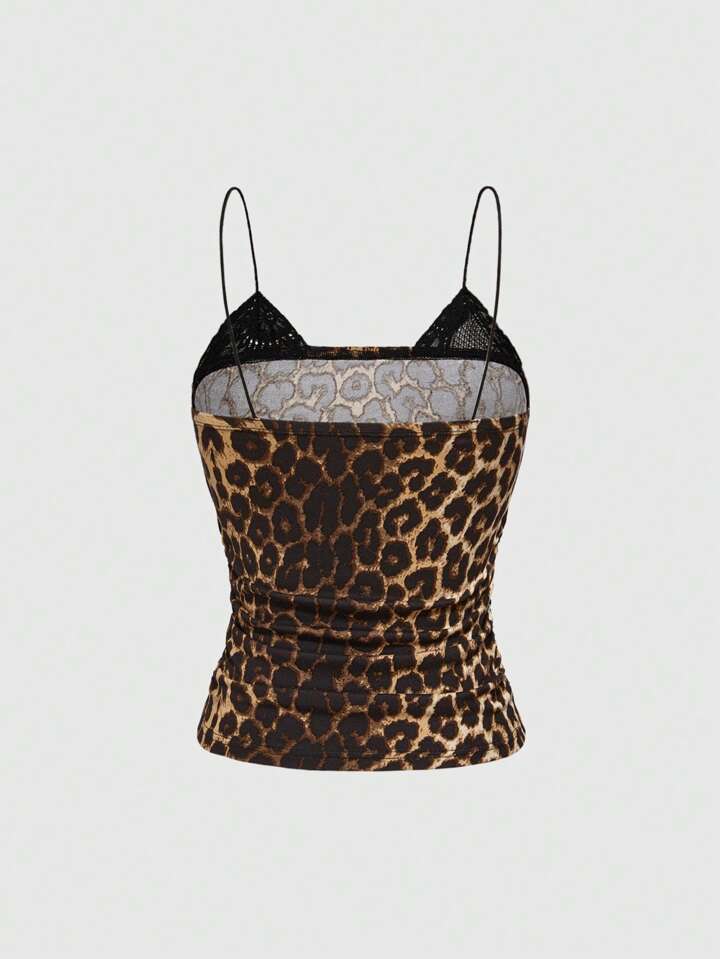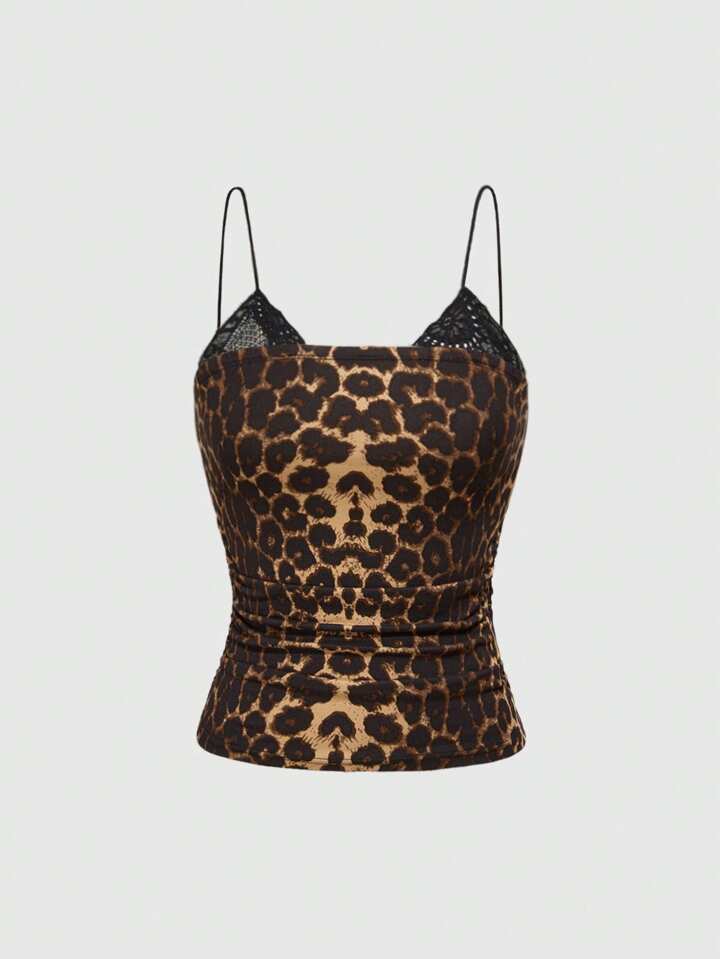 Grunge Punk Damen Basic Spitzen-Saum Stehkragen Gerafftes Camisole