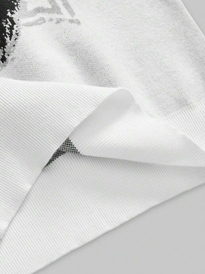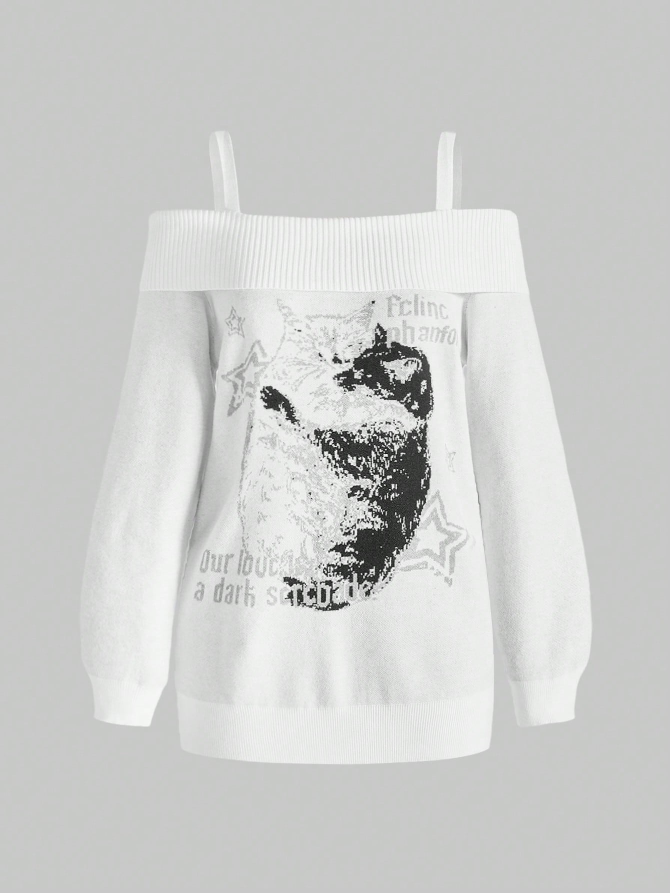Grunge Punk Damen lässiger Katzenmuster Loose Off-Shoulder Pullover, Herbst/Winter