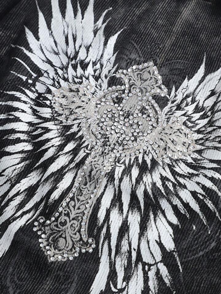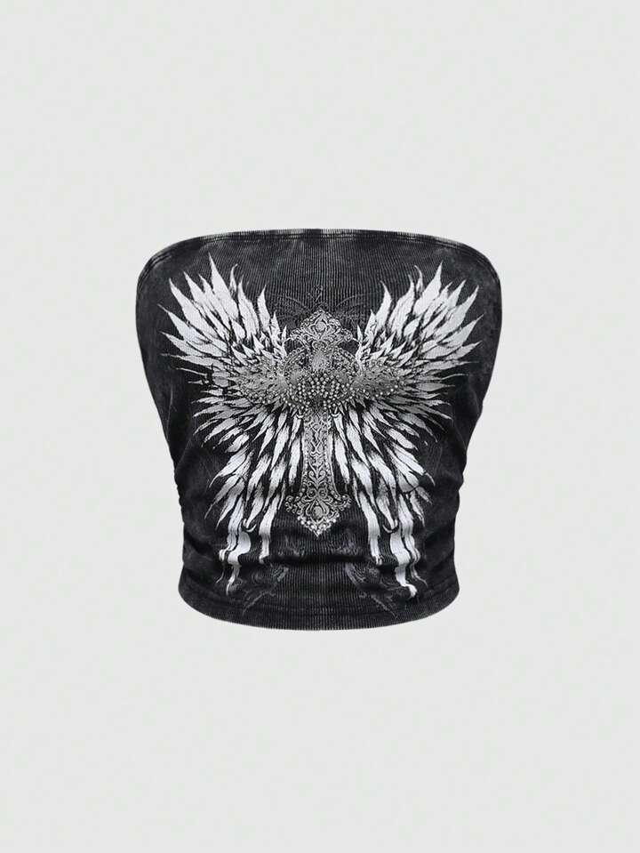 Grunge Punk Damen Ärmellos Top mit Kreuz- und Flügel-Strass-Verzierung