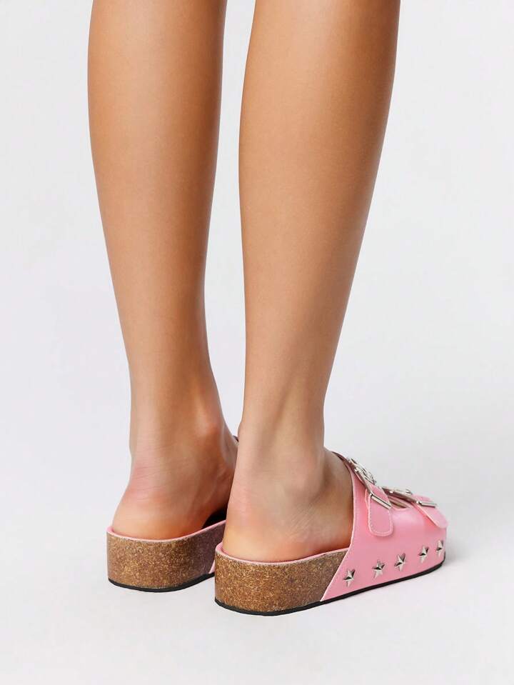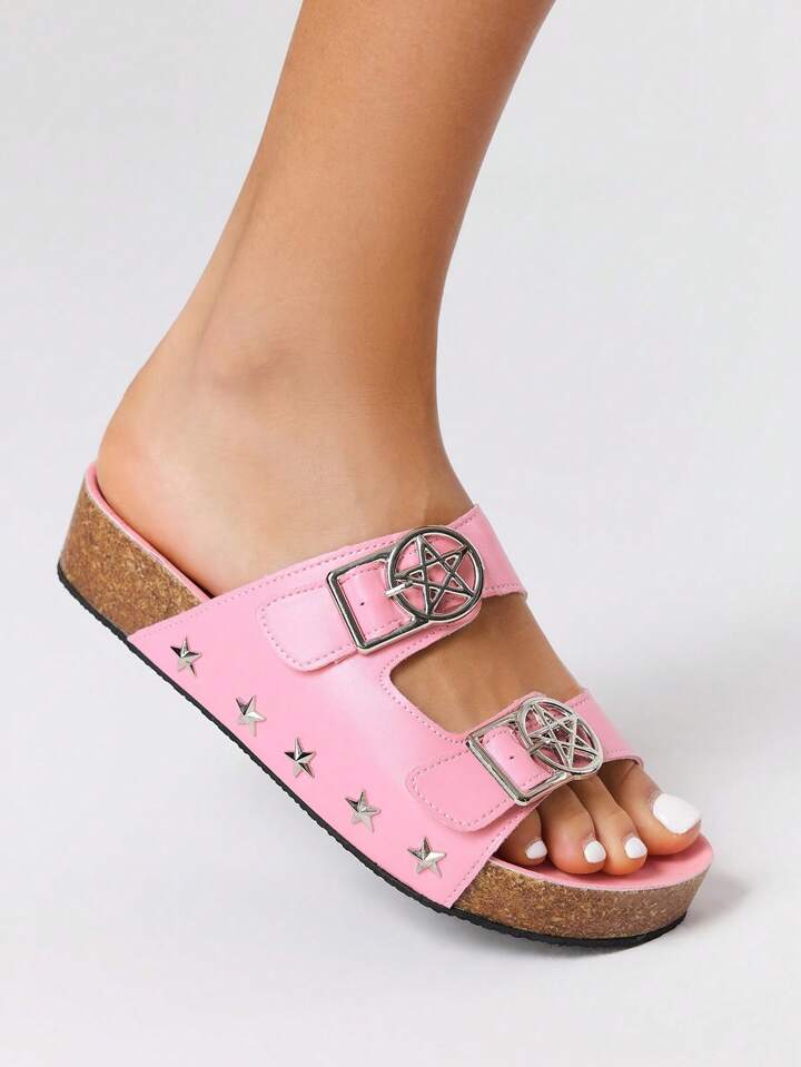 Grunge Punk Damen Dunkel Punk Rock Römische Strandschuhe, Riemen Slip-On Lässig Urlaub Zehentrenner mit Sternöffnung, Plateau Keil Sandalen