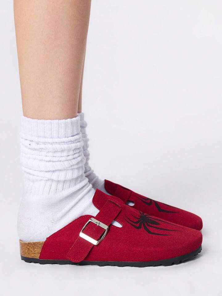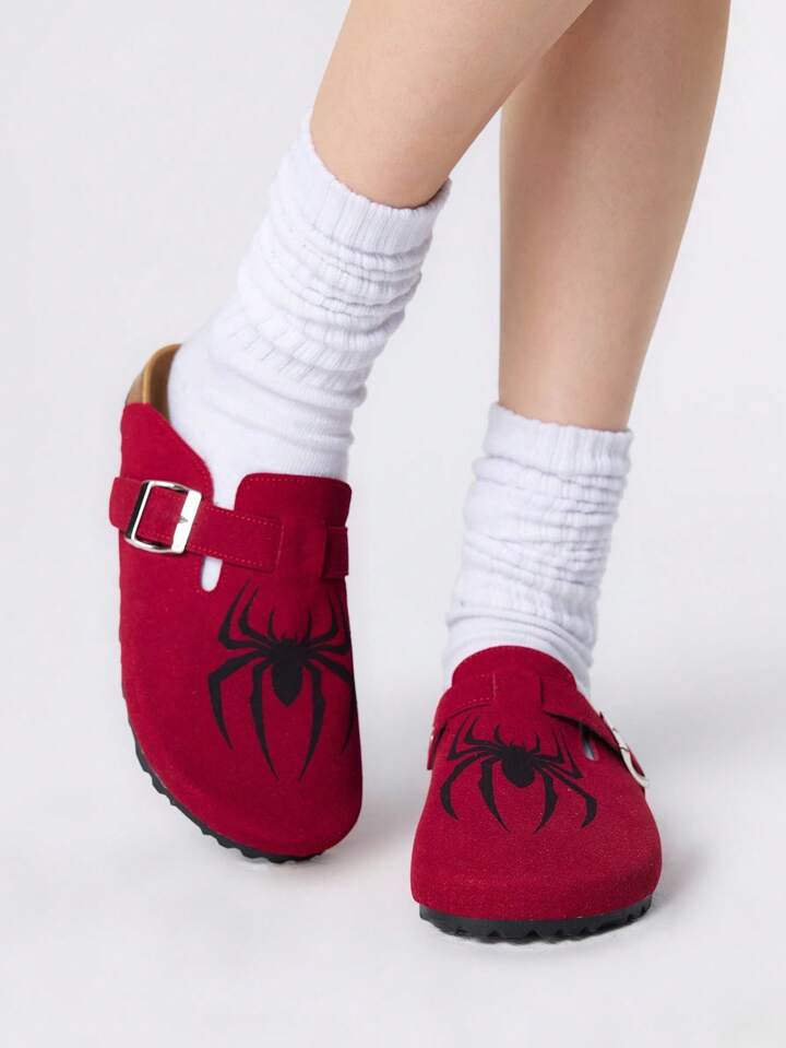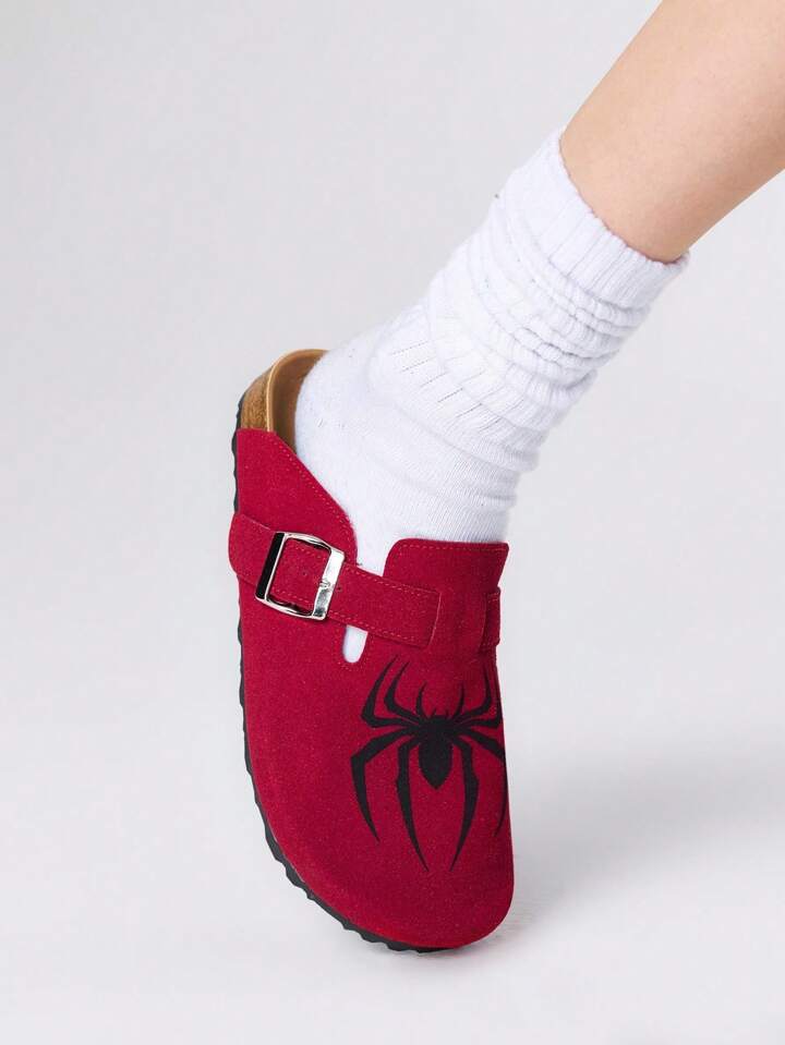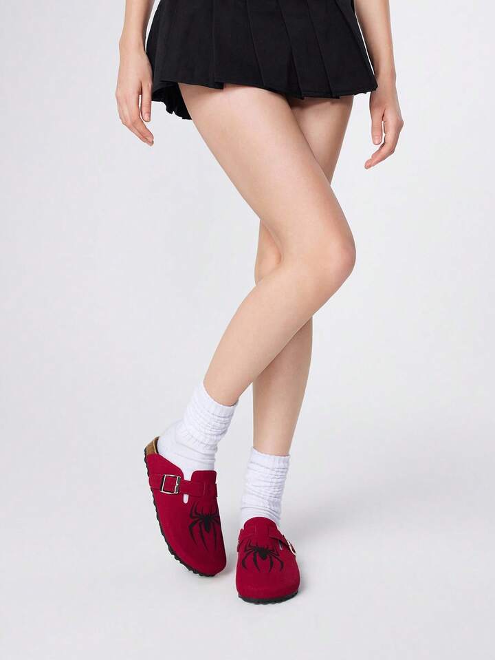 Grunge Punk Damen Dark Rock Punk Goth Stil runde Zehenpartie Slip-On Mule Flats, weiche Sohle Outdoor Pantoffeln, Halloween