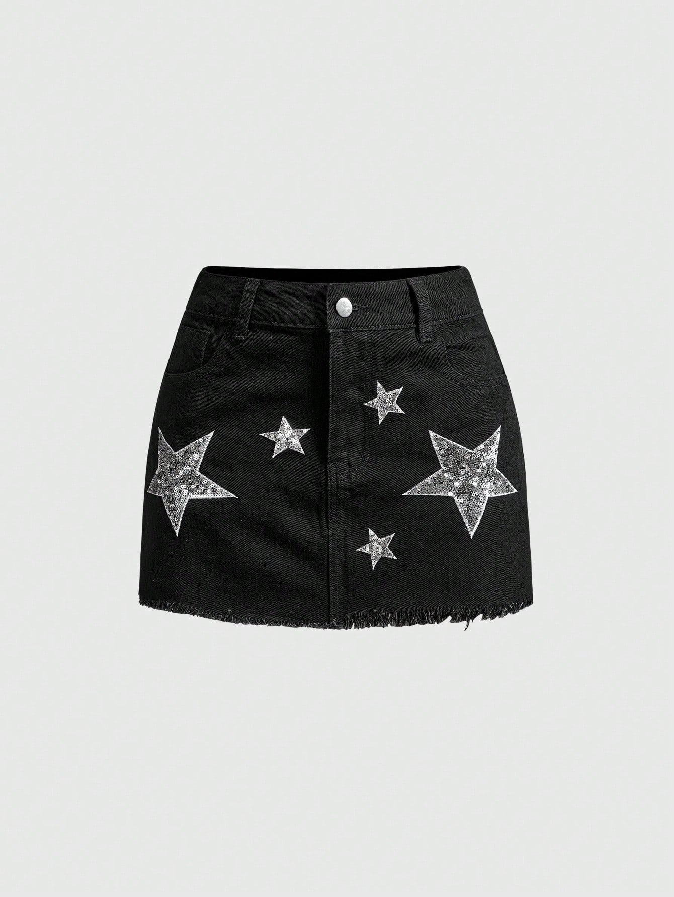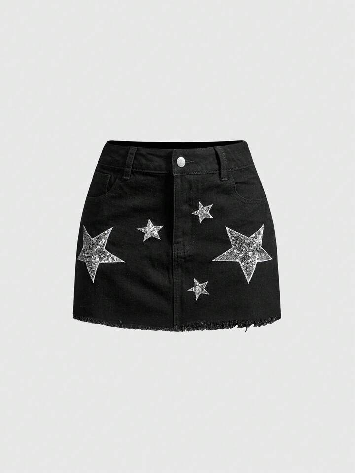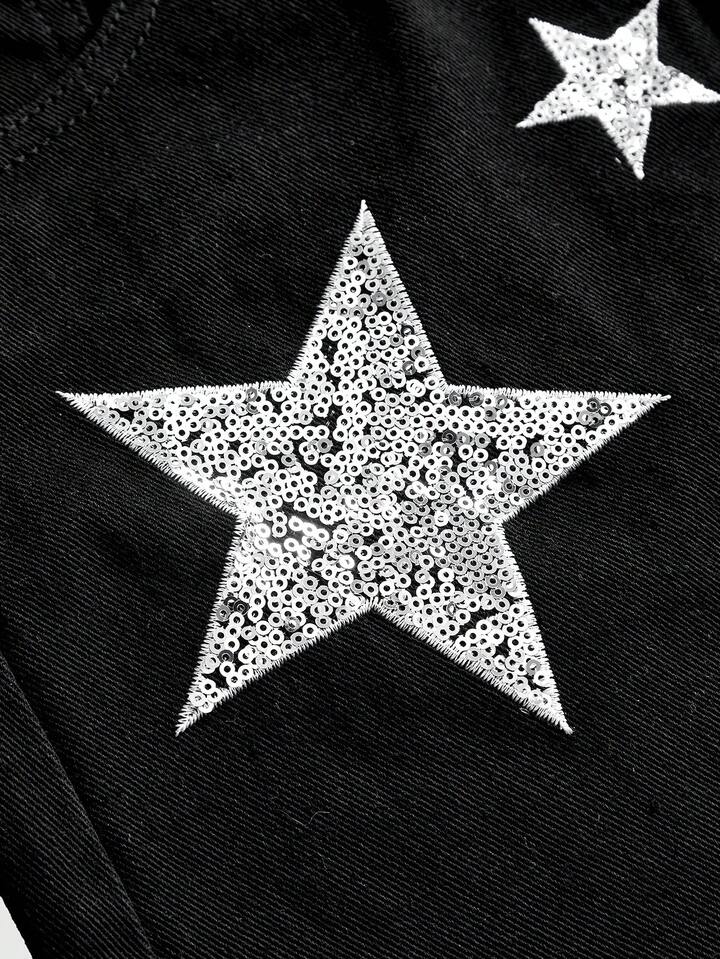 Grunge Punk Damen modische Denim Shorts mit Pailletten-Stern-Verzierung, Sommer